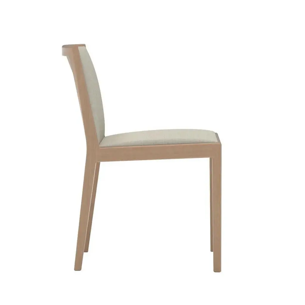 Chair with upholstered seat and backrest and solid beech wood frame.In all of its versions, Carlotta is inviting and resilient. This timeless design is noted for its versatility in both contract and residential applications for its simple, classic lines. It is offered with two different backrest heights.