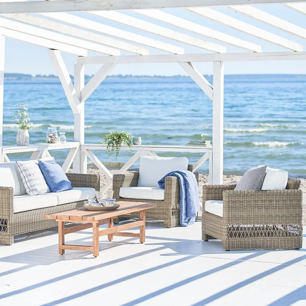 Carrie lounge & garden chair is handwoven with weatherproof maintenance-free Art Fibers on a strong hand-bent aluminum frame. The garden chair is made in the colour antique, which is original and suitable for all outdoor environments. The Georgia Garden collection is inspired by the British colonial style and by the old Danish wicker furniture. The Carrie chair is a Danish design by Sika Design. Carrie Garden chair is strong, comfortable and very suitable for private use as well as in hotels and restaurants. Cushions can be purchased for the Carrie chair in any optional fabric, sewn in our Danish sewing department. We also offer to sew cushions in your own fabric, please contact us for more information about material use. The Georgia Garden collection is made for life in the garden and the cozy wicker furniture requires no maintenance. Then there is time and for lots of cozy moments with friends and family on the terrace. These moments together with good friends remind us all what really matters in a busy weekday.