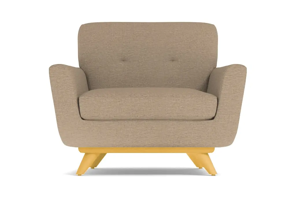 The Carson chair is a fun mix of retro and futuristic. With a flared silhouette, tufted back cushioning and a solid wood base, this USA made beauty, is made to blend in or stand out. Choose from a plethora of exciting fabrics and customize it to fit the aesthetic of your space perfectly.