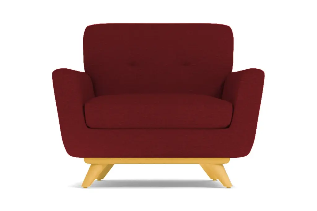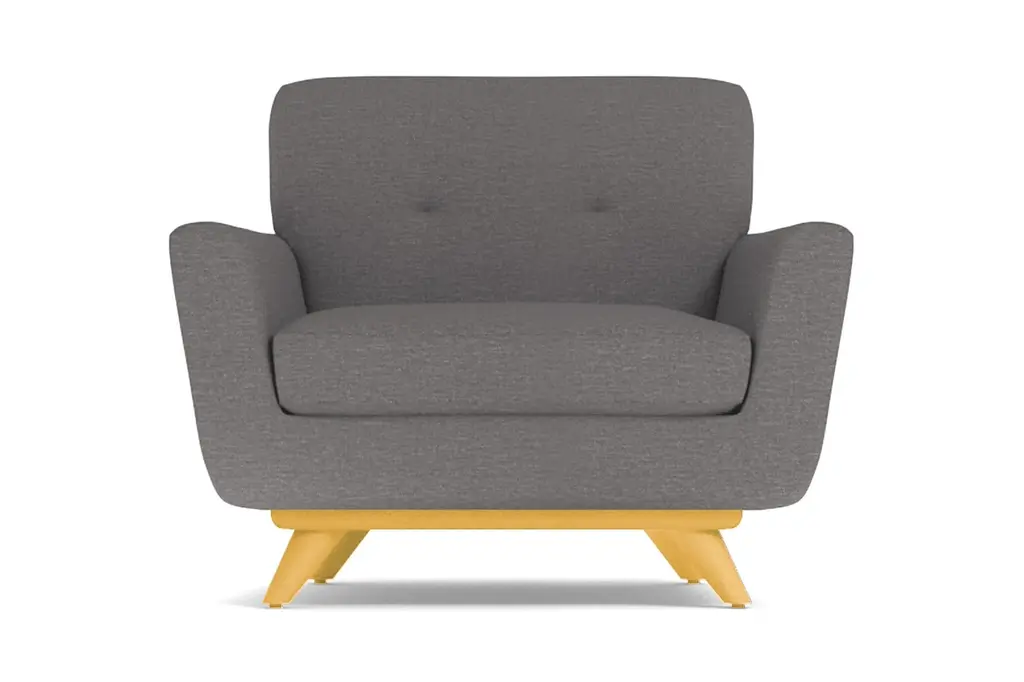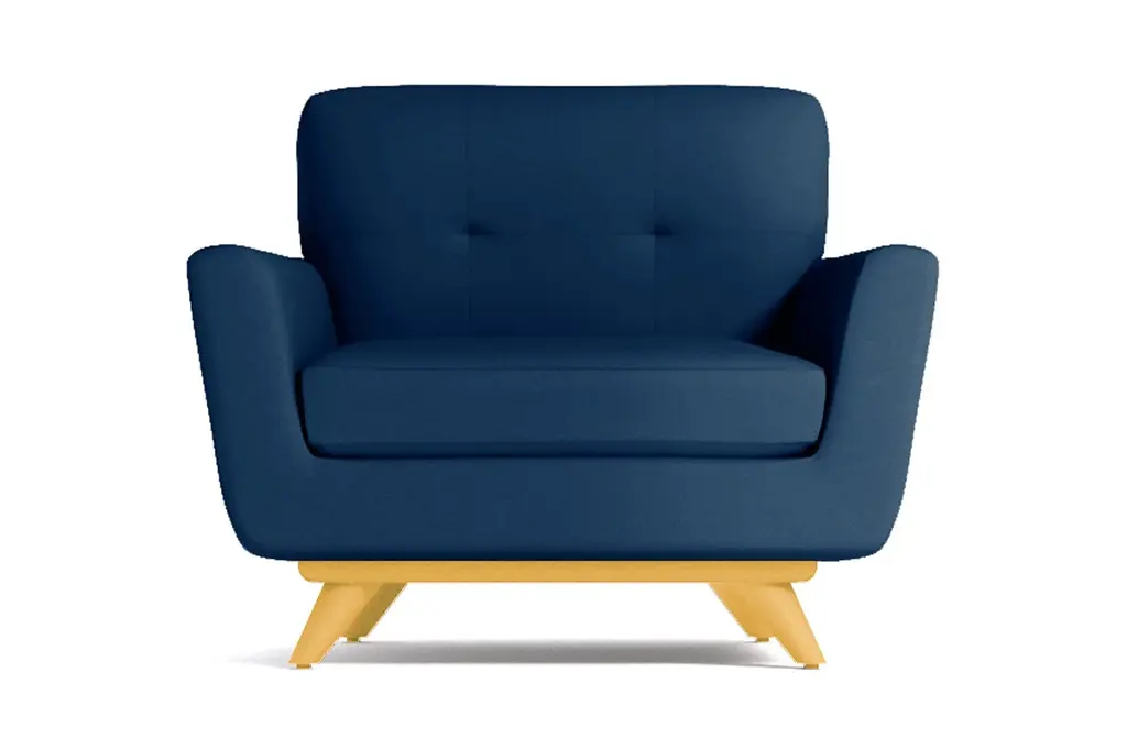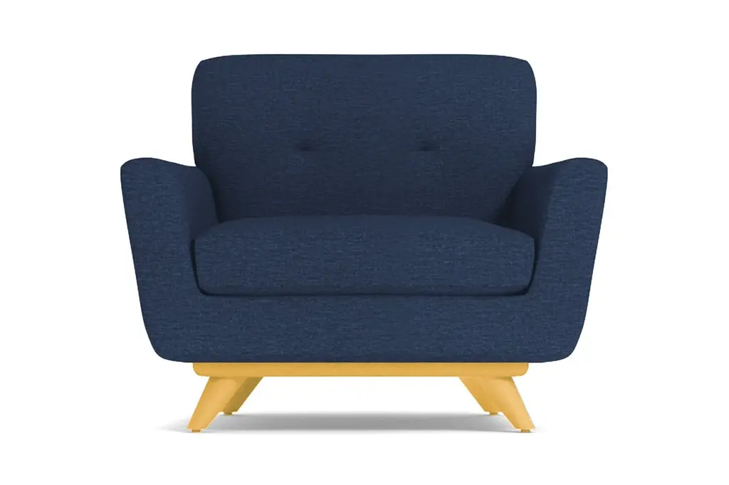 The Carson chair is a fun mix of retro and futuristic. With a flared silhouette, tufted back cushioning and a solid wood base, this USA made beauty, is made to blend in or stand out. Choose from a plethora of exciting fabrics and customize it to fit the aesthetic of your space perfectly.