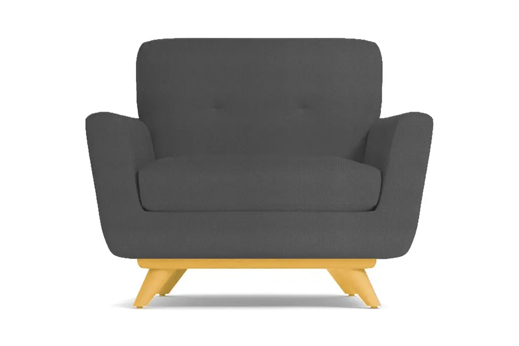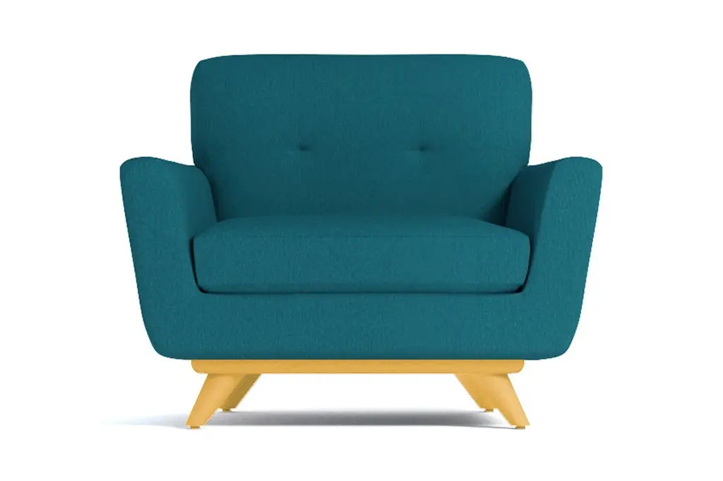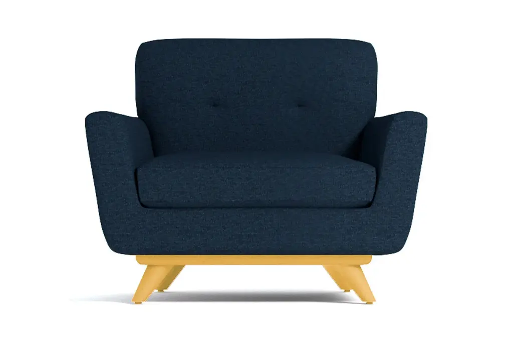 The Carson chair is a fun mix of retro and futuristic. With a flared silhouette, tufted back cushioning and a solid wood base, this USA made beauty, is made to blend in or stand out. Choose from a plethora of exciting fabrics and customize it to fit the aesthetic of your space perfectly.