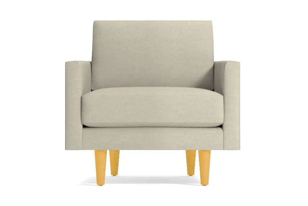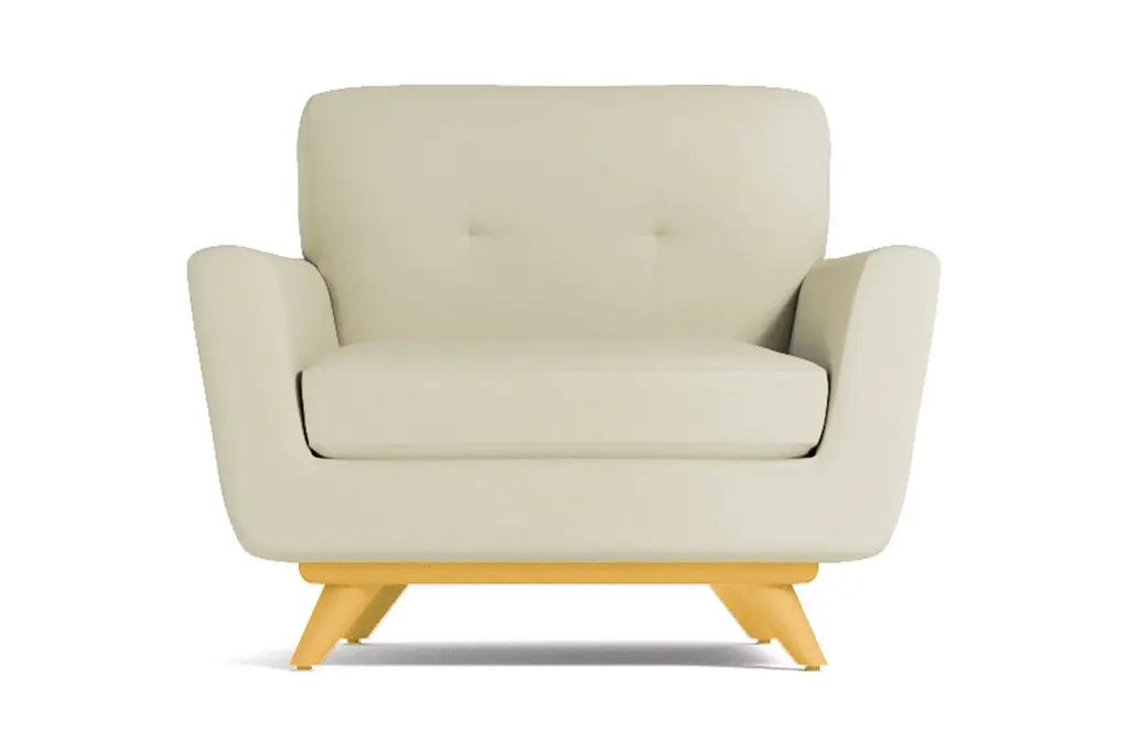 The Carson chair is a fun mix of retro and futuristic. With a flared silhouette, tufted back cushioning and a solid wood base, this USA made beauty, is made to blend in or stand out. Choose from a plethora of exciting fabrics and customize it to fit the aesthetic of your space perfectly.
