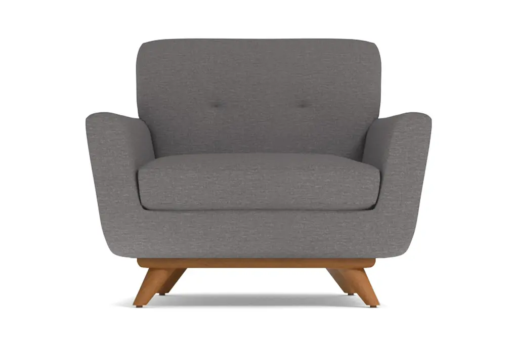 The Carson chair is a fun mix of retro and futuristic. With a flared silhouette, tufted back cushioning and a solid wood base, this USA made beauty, is made to blend in or stand out. Choose from a plethora of exciting fabrics and customize it to fit the aesthetic of your space perfectly.