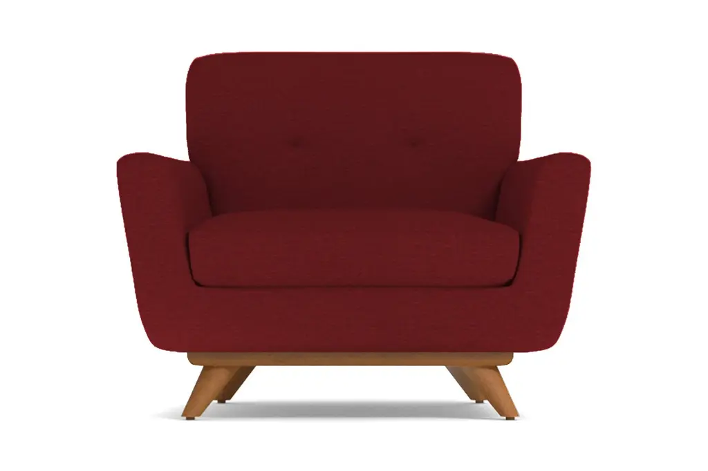 The Carson chair is a fun mix of retro and futuristic. With a flared silhouette, tufted back cushioning and a solid wood base, this USA made beauty, is made to blend in or stand out. Choose from a plethora of exciting fabrics and customize it to fit the aesthetic of your space perfectly.