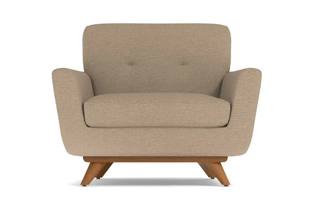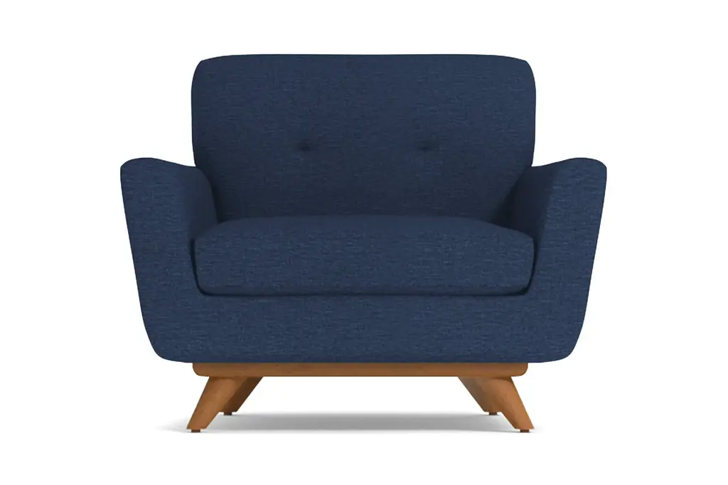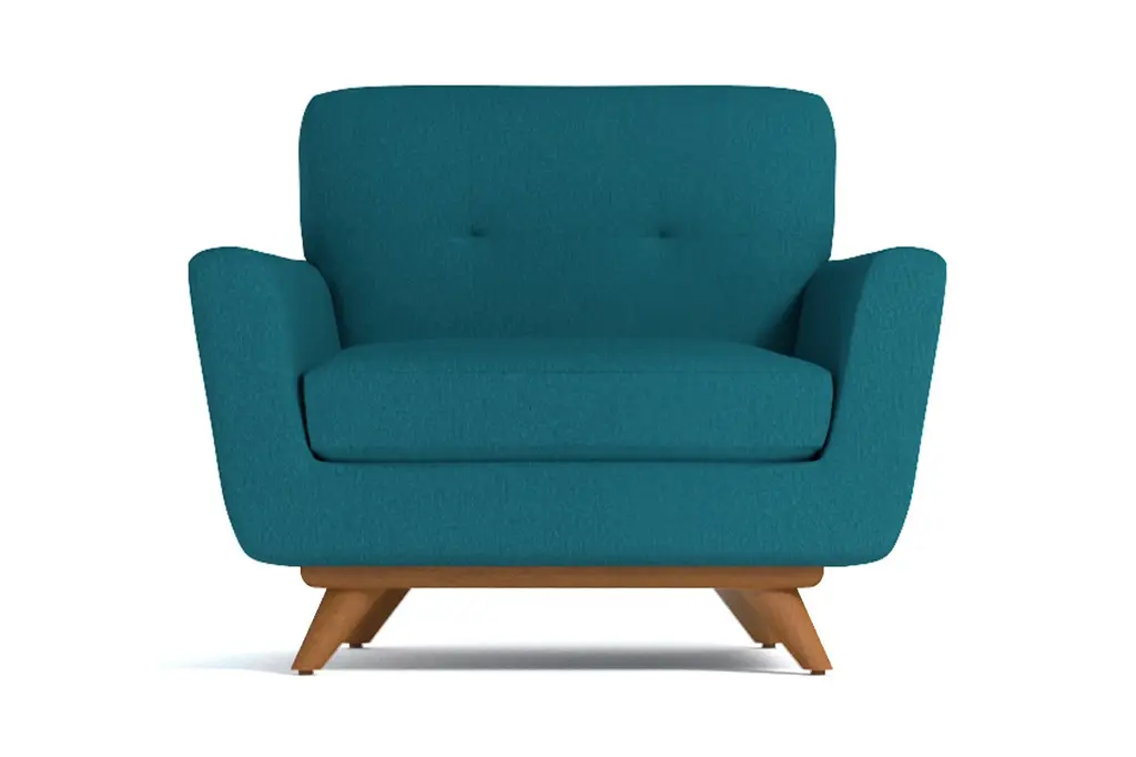 The Carson chair is a fun mix of retro and futuristic. With a flared silhouette, tufted back cushioning and a solid wood base, this USA made beauty, is made to blend in or stand out. Choose from a plethora of exciting fabrics and customize it to fit the aesthetic of your space perfectly.