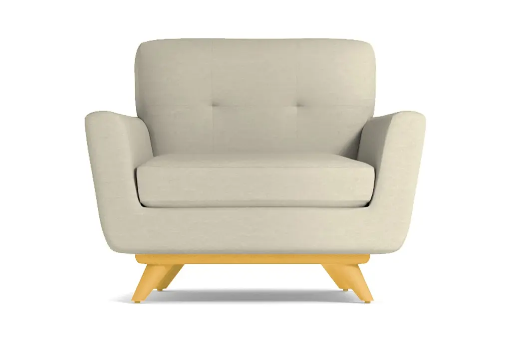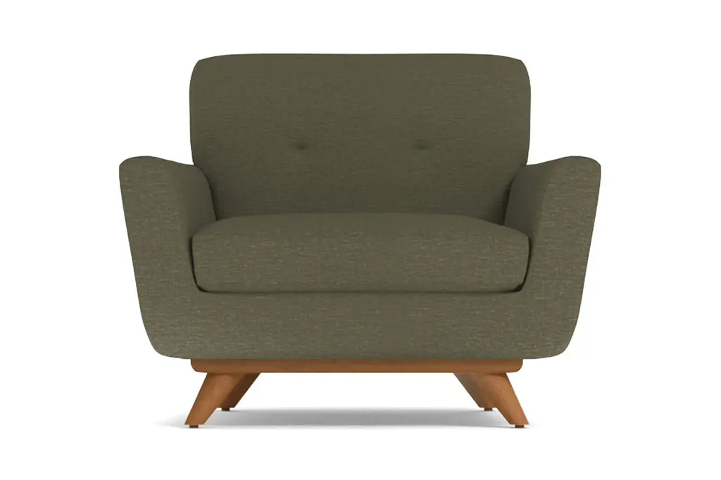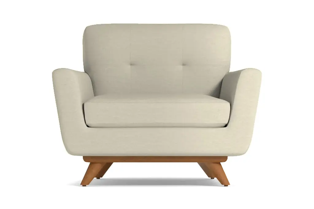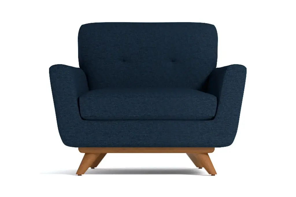 The Carson chair is a fun mix of retro and futuristic. With a flared silhouette, tufted back cushioning and a solid wood base, this USA made beauty, is made to blend in or stand out. Choose from a plethora of exciting fabrics and customize it to fit the aesthetic of your space perfectly.