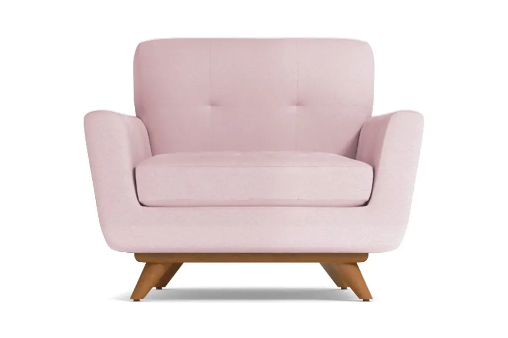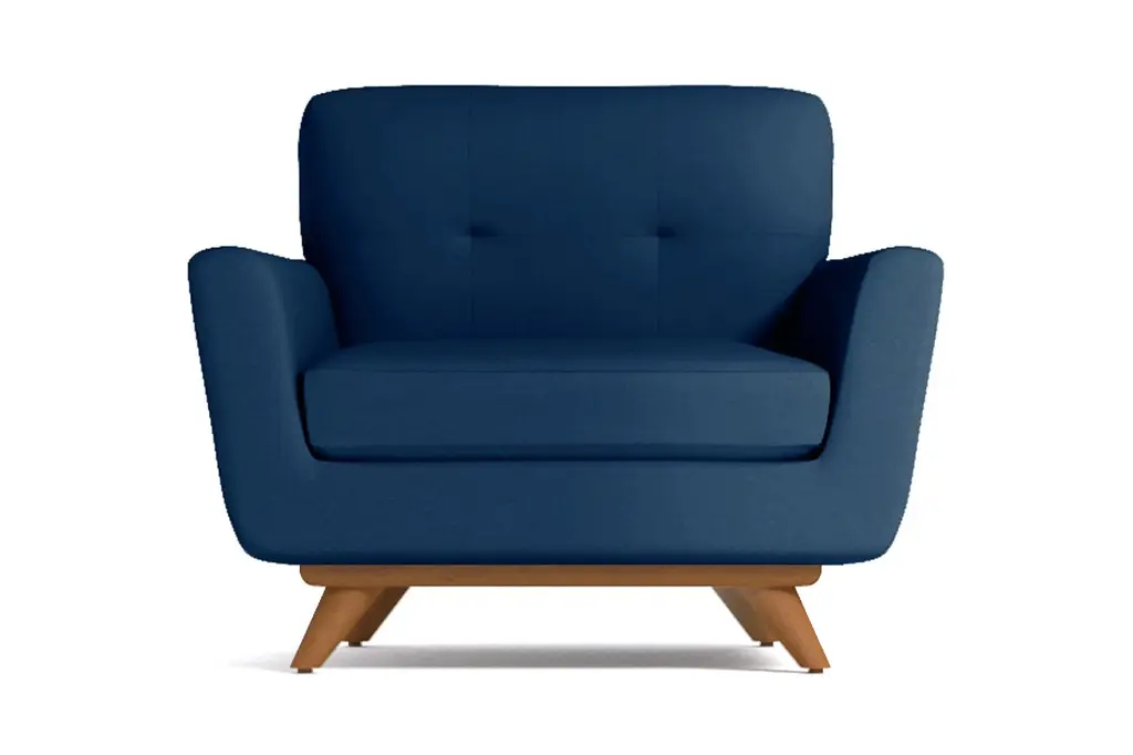 The Carson chair is a fun mix of retro and futuristic. With a flared silhouette, tufted back cushioning and a solid wood base, this USA made beauty, is made to blend in or stand out. Choose from a plethora of exciting fabrics and customize it to fit the aesthetic of your space perfectly.