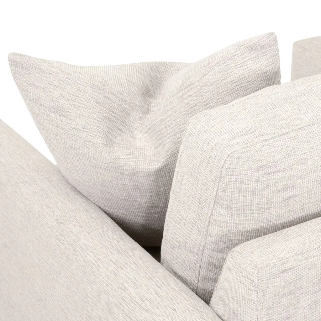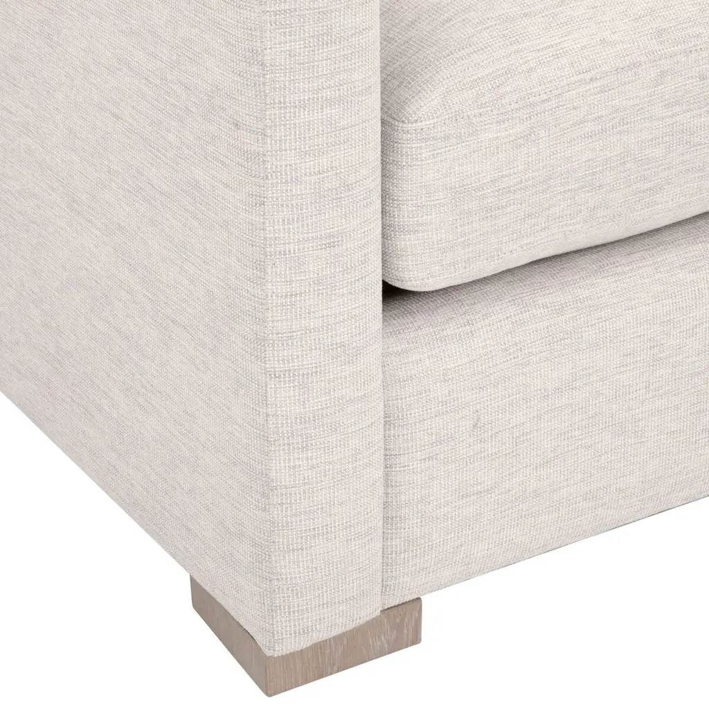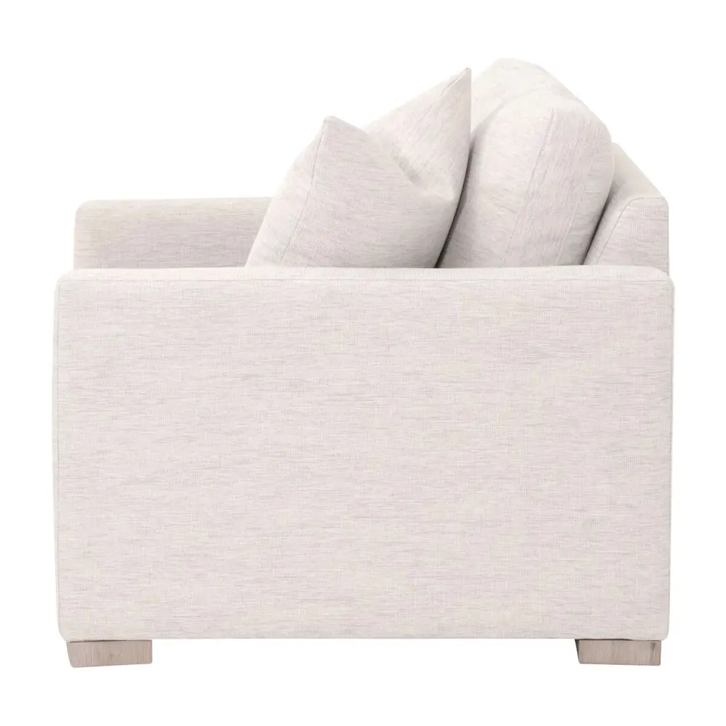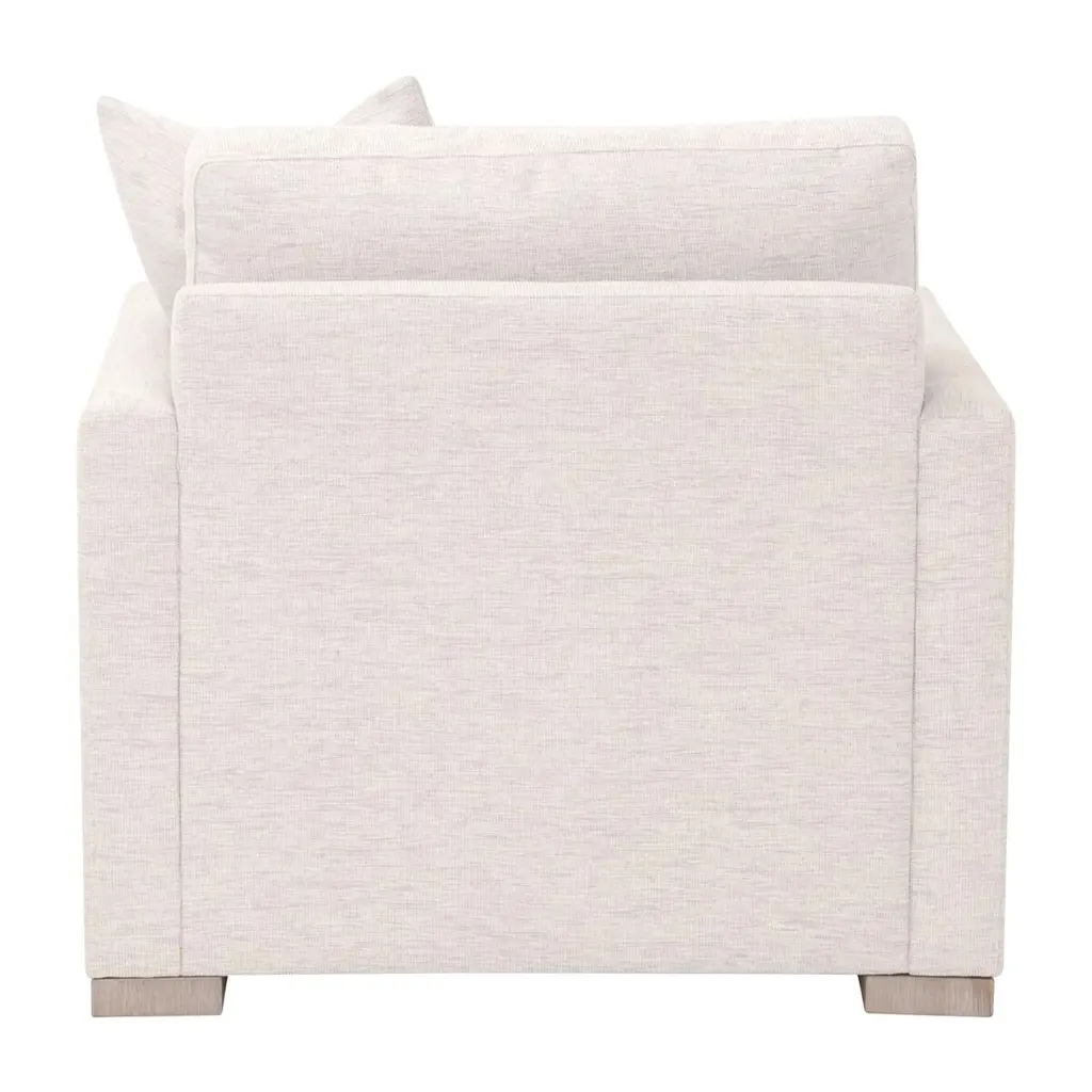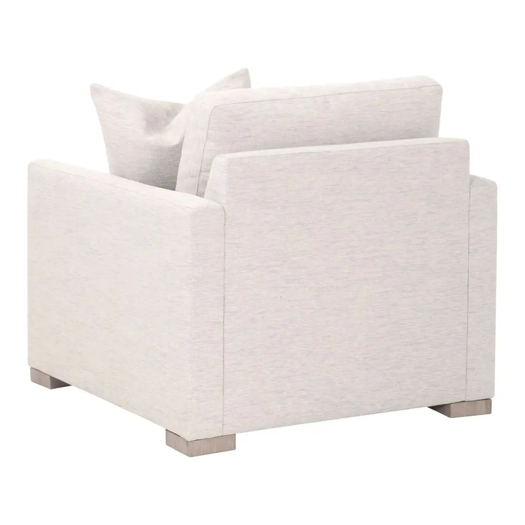 Completing a living space with the Carson Sofa Chair will add transitional style with easy-to-care-for upholstery. The performance fabric features stain resistant properties to help ensure it is easy to maintain for years to come. Removable and reversible back and seat cushions allow for easy maintenance and fluffing. An 8-way hand tied suspension adds comfort and durability to the structure of the chair as well. It also includes top stitched box cushions, and a down feather throw pillow for additional style and comfort. The exposed solid oak wood feet are KD construction, making it easy to assemble and disassemble. The simple design is great for a beachy or casual atmosphere.