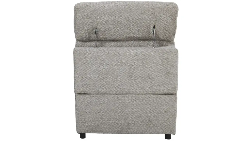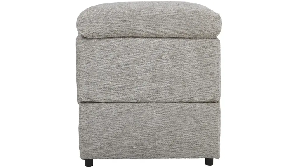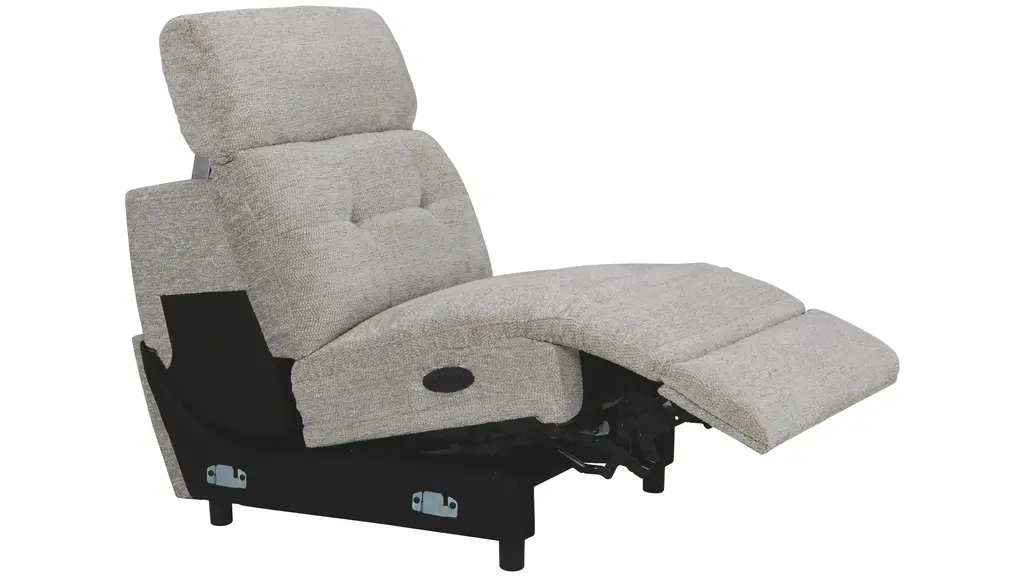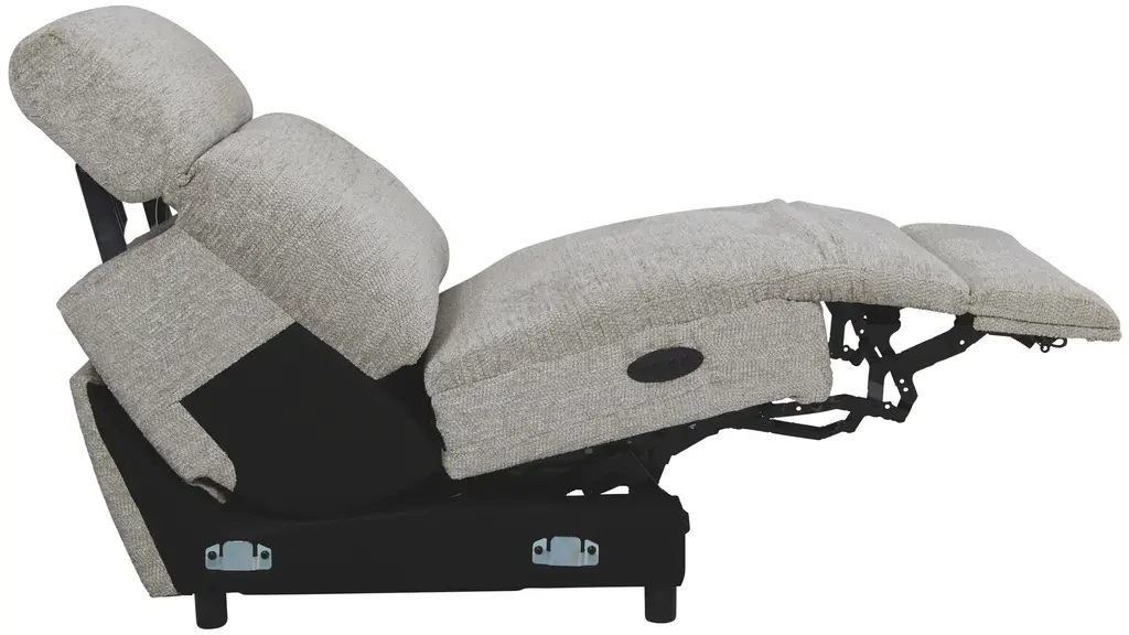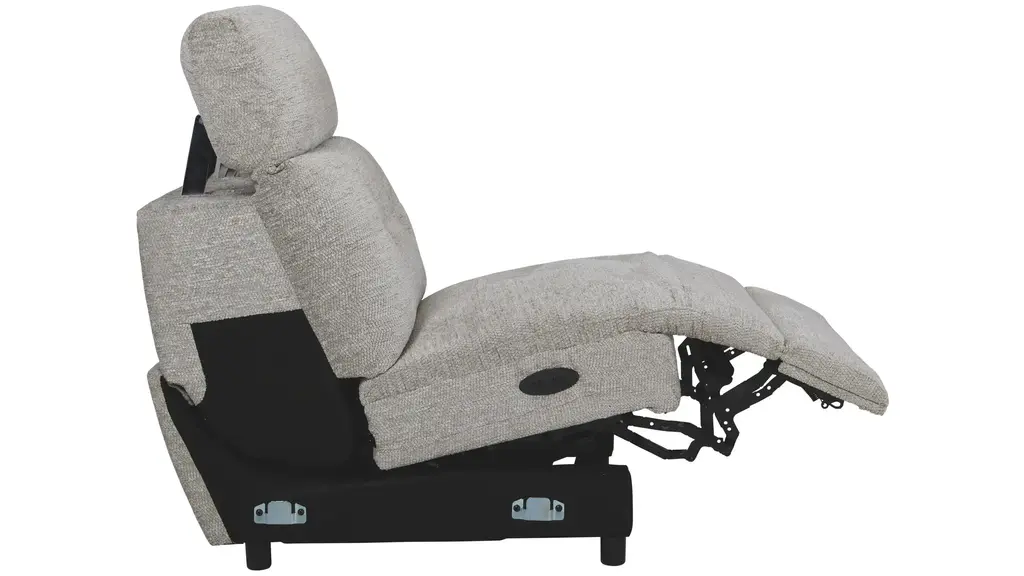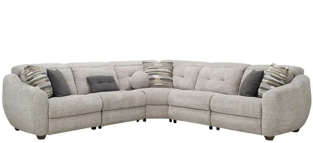 The pleasing lines and soft neutral fabric of the Carson beckon you to blissful, easy comfort. You'll be on cloud nine with its oversized, rounded silhouette, unique angles and retro vibe. Essential power features keep it grounded in functionality and an array of cool accent pillows-including a fleecy ball-are simply delightful.