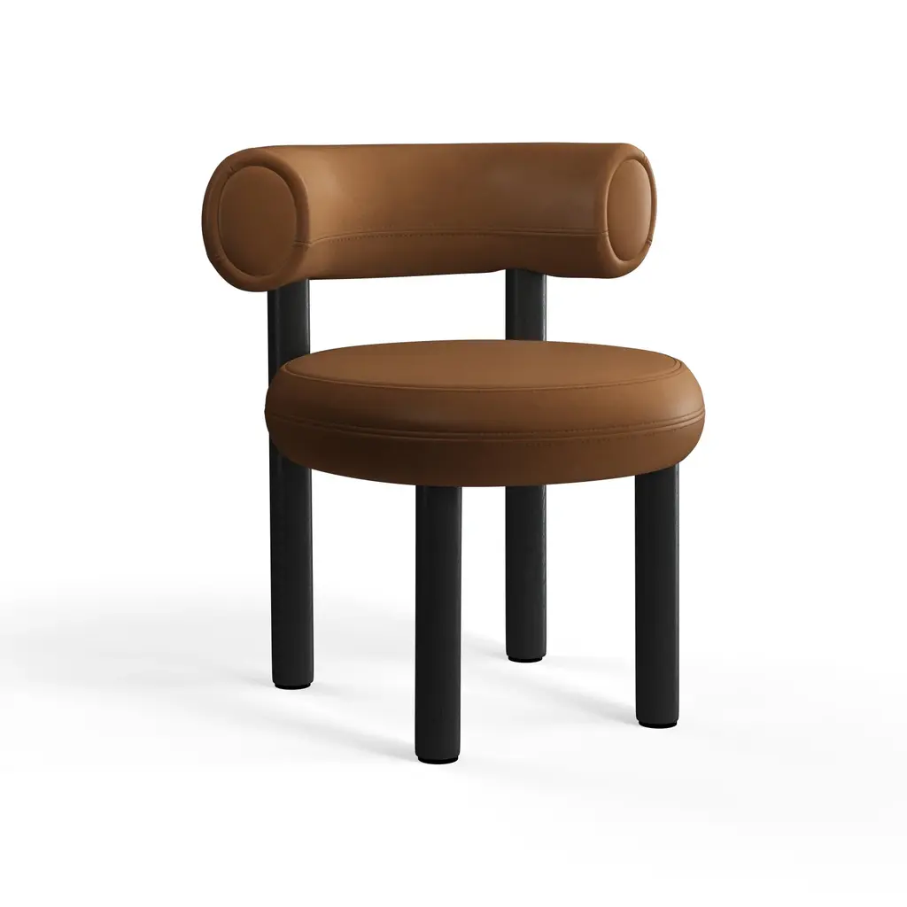 The Casablanca chair is designed for long dinners, as you sit amazingly well in the chair with a soft backrest that matches the seat. The frame is made of coated metal, the seat and backrest are made of leather, wool, velvet or polyester. That being said - Casablanca can be customized as you prefer and we offer several types of upholstery and frame colors.Danish design from Design by UsMaterialUpholstery : Velvet Fabric - Leather FabricFrame : Powder coated steel and upholstery on wooden frame.DimensionsW 22” x D 18” x H 32”Pictured inDark brown leather, raw frame.