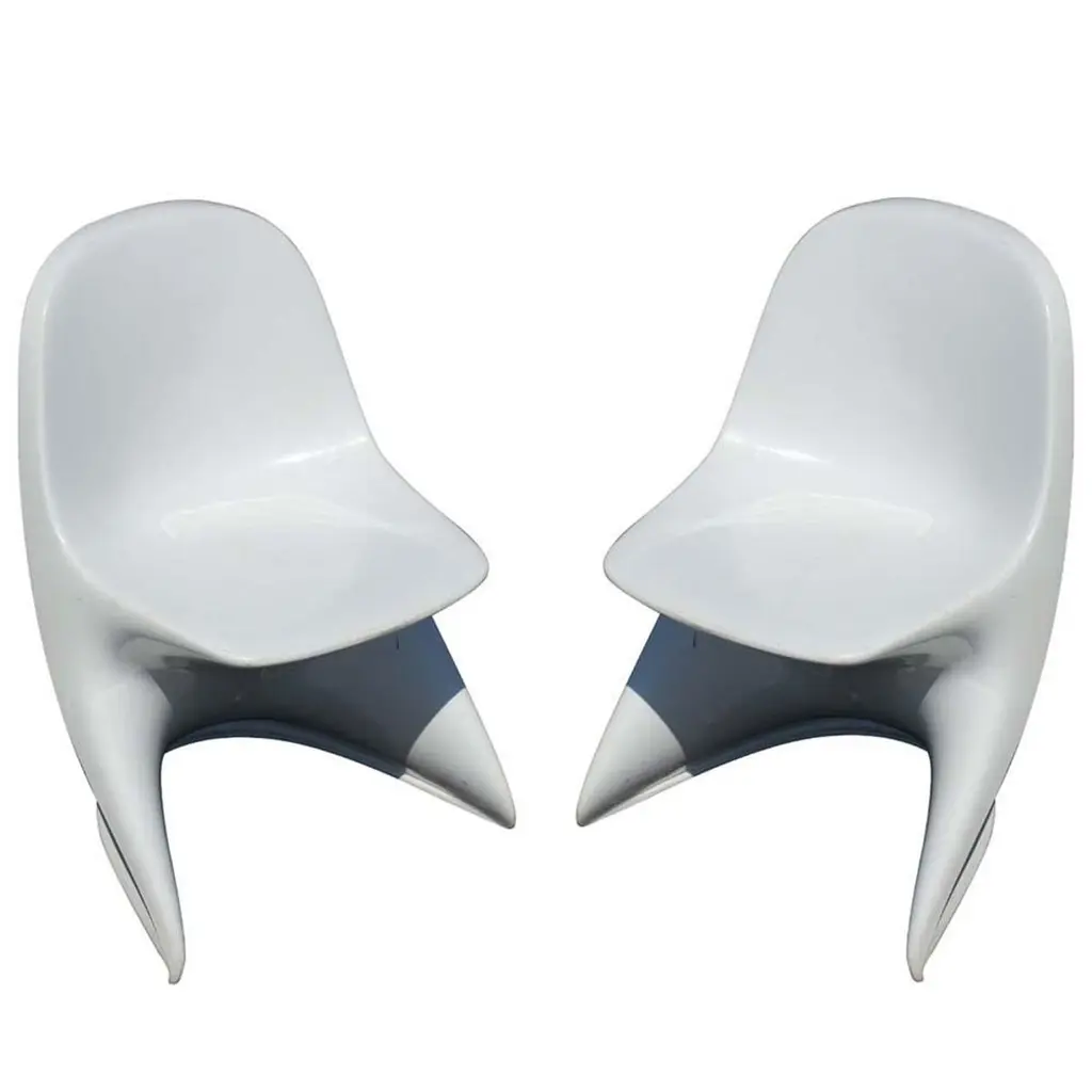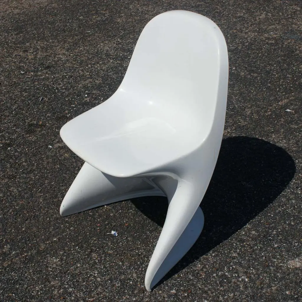 Modern Casalino Alexander Begge children's stacking chair size "0" 1973 design White color size "0"ABS one-piece molded plastic constructionOrganic, cantilevered appearance, much like Verner Panton`s designsFunctional, stackable, and easy to store design.3 available, multiple colors and sizes available. See last photo for reference.