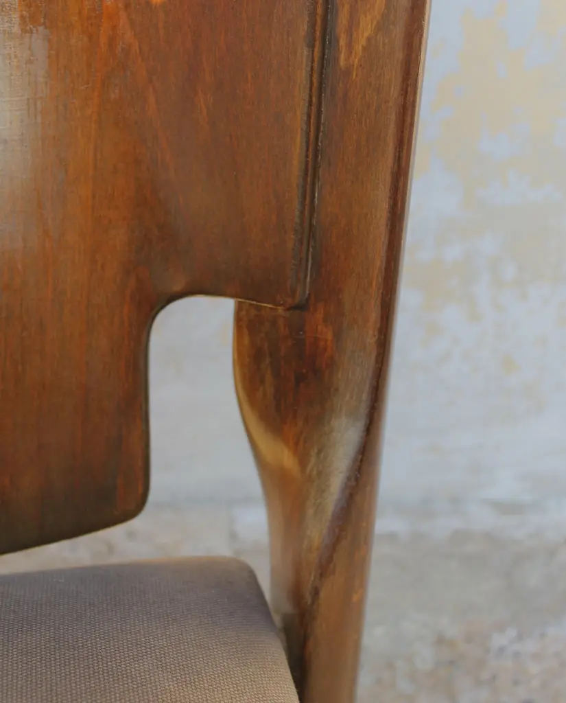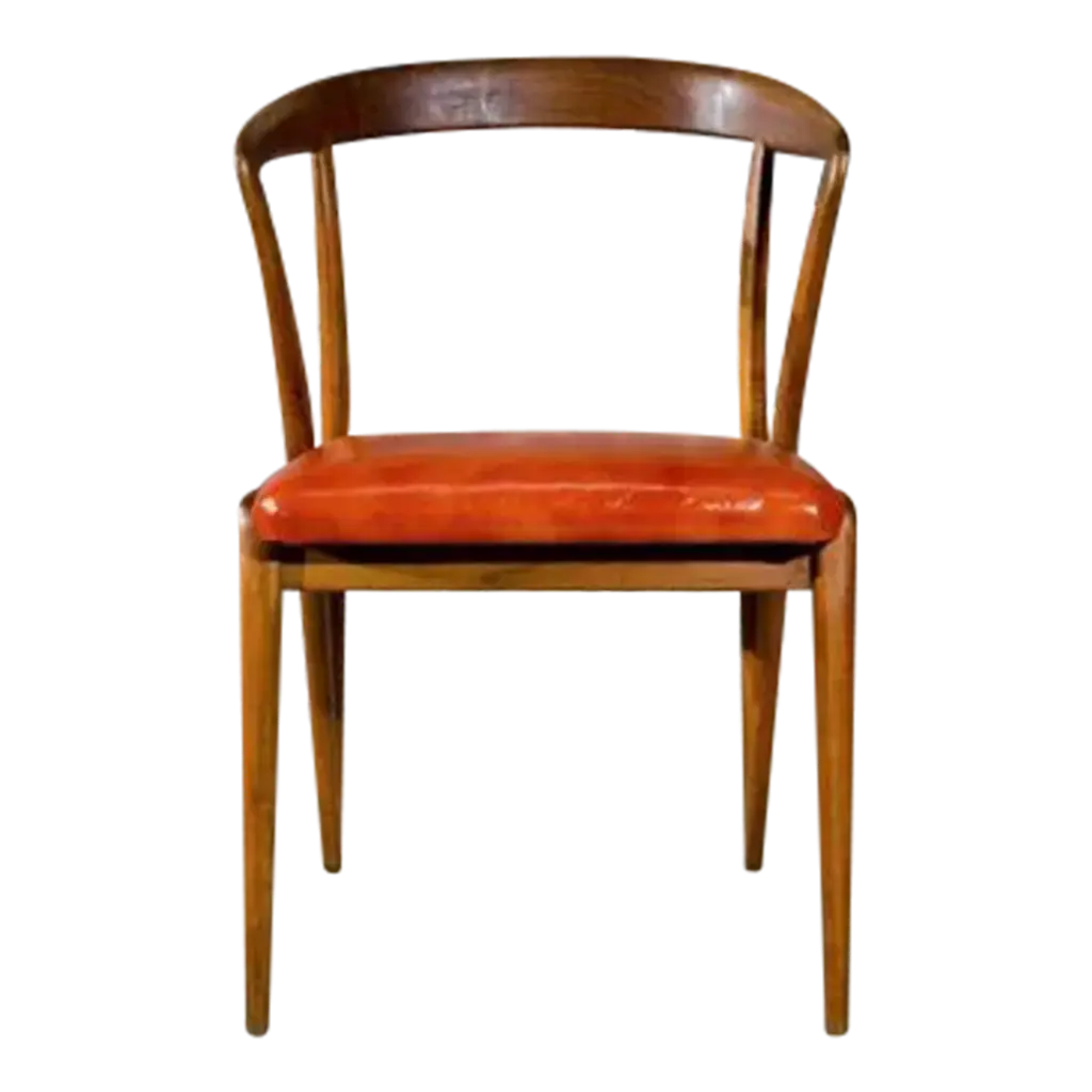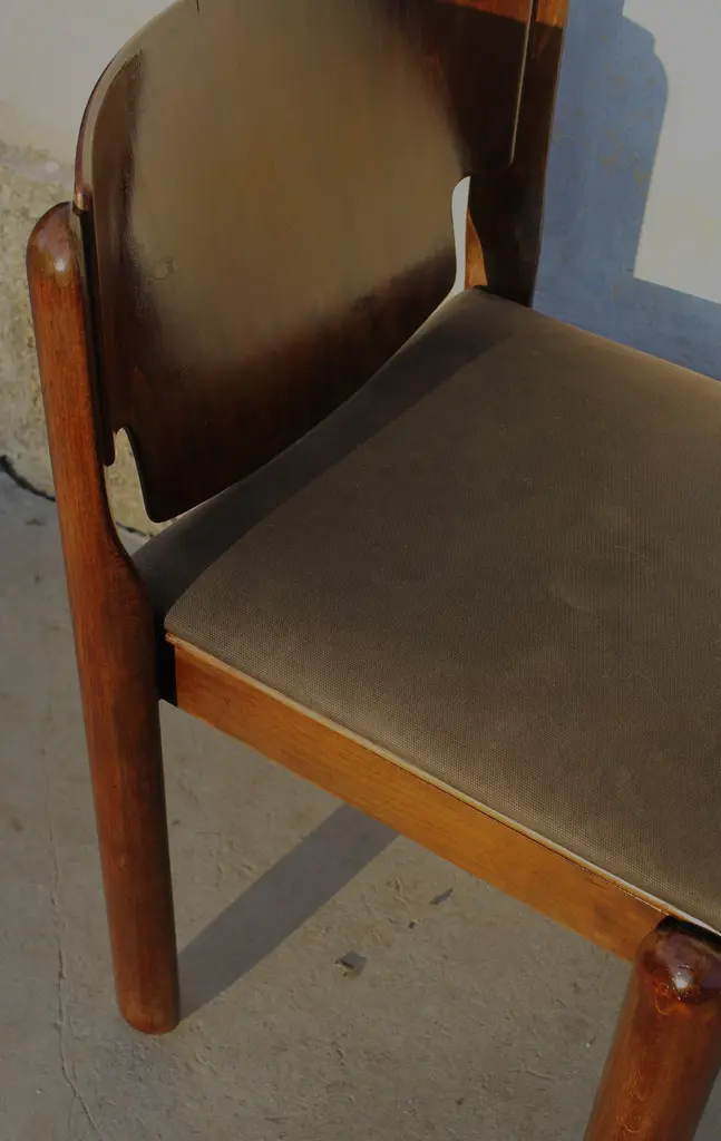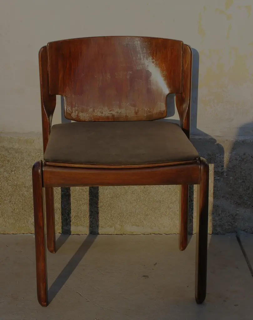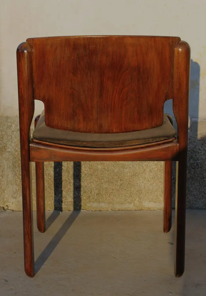 Cassina walnut chair Mod. 122 by Vico Magistretti Italy 60s (six available)The Model 122 chairs are a creation of the famous Italian designer Vico Magistretti, known for its ability to combine modern aesthetics and timeless functionality. Made by Cassina in 1967, these chairs represent an authentic piece of the history of Italian design, testifying to the craftsmanship and the continuous research of innovation.. The solid walnut wood frame gives the chairs a natural beauty and a lasting resistance, adding a touch of warmth and elegance to your space..The chairs must be polished and the fabric of the seat can be replaced with a color or a finish of your choice