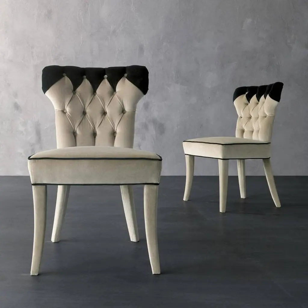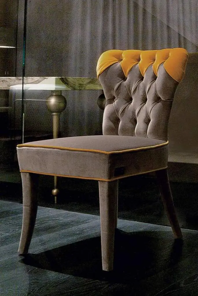 Chair Catalina in handmade fabric cat. Awith wood structure. Available with genuineleather in cat C. Price: 5200,00€..