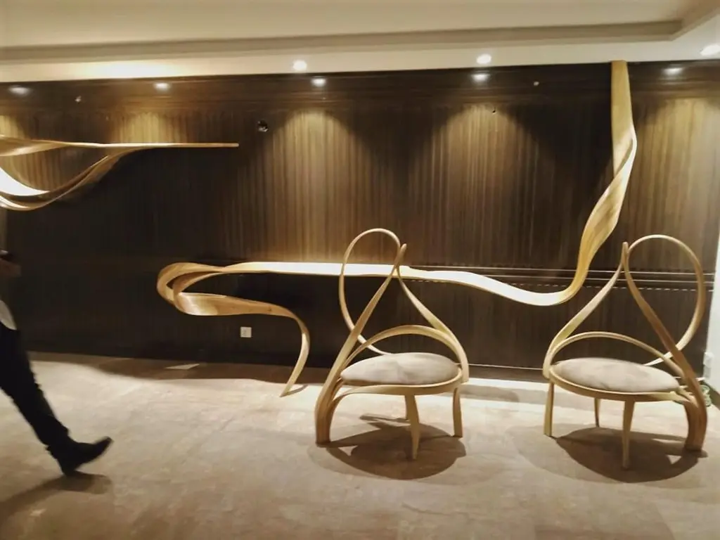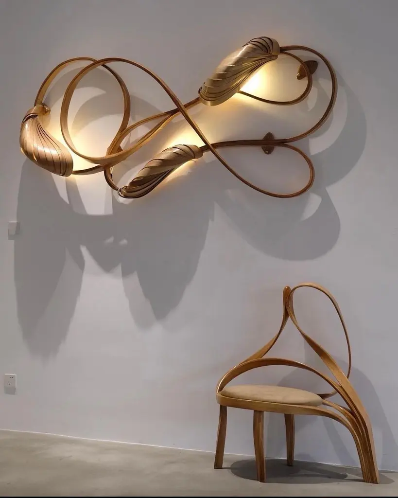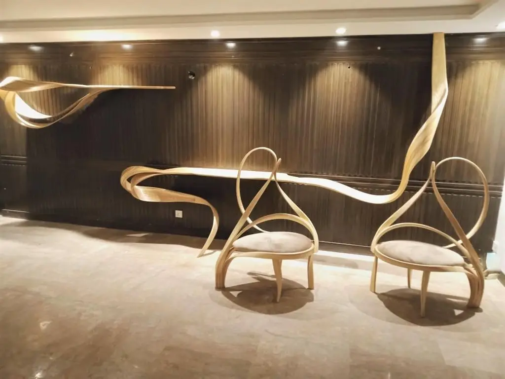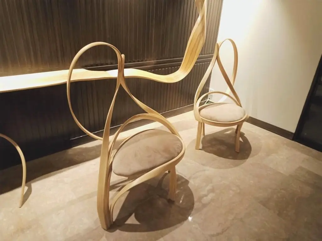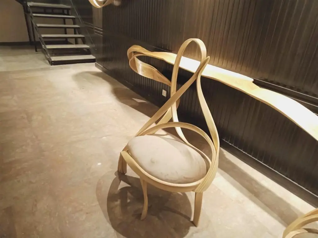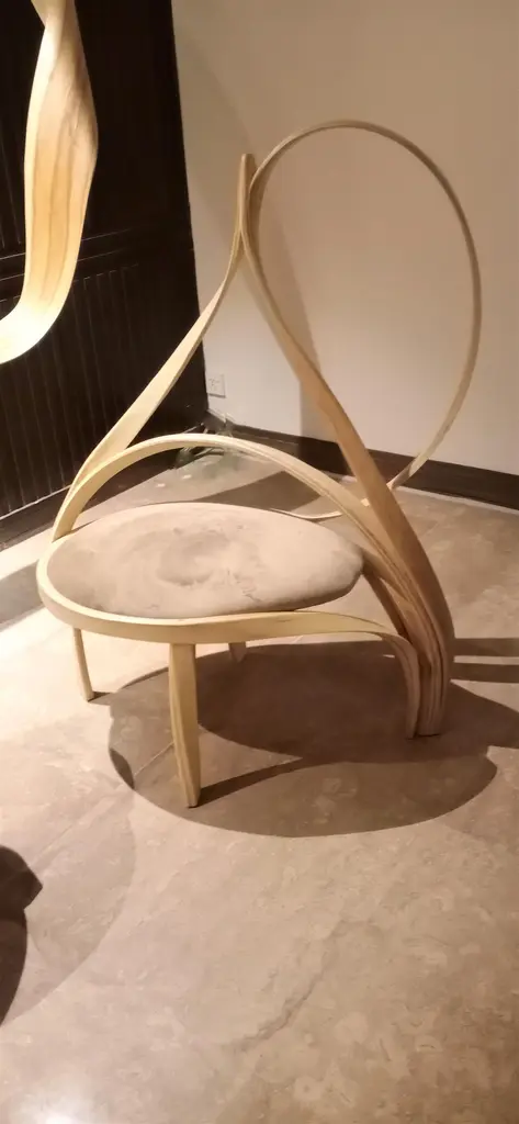 Cataract II a side/filler chair made in solid ashwood by bending wood. Three of the legs have been made using the wood-bending technique to adopt an abstract natural wave-like design. It has been upholstered in a natural Sand coloured velvet. The grain-revealing polish adds a sense of organic design to the piece. Our Vrksa collection is based on bending solid wood to create the pieces - this has allowed us to design handmade furniture in a totally unique aesthetic in which the natural flow of the wood takes the reins of design. No two pieces are exactly the same because of the technique used; making each piece unique. Other points worth knowing:- The design may vary slightly from the piece in the pictures since each piece is handmade.- If a pair is ordered, the two chairs are designed to mirror each other.- The cloth for the upholstery can be customized.- You can choose from an array of finishes.