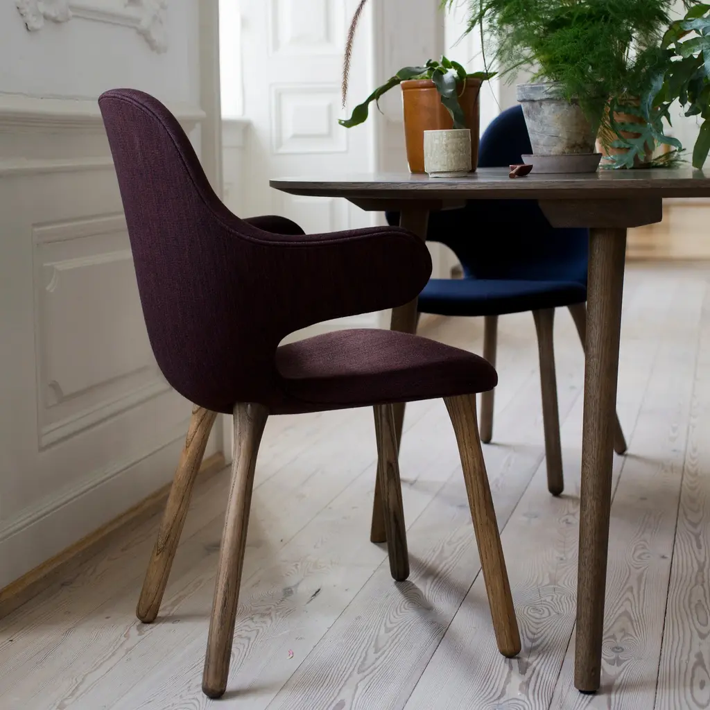 We love the way this chair welcomes us with open arms. Jaime Hayon's inaugural entry for Copenhagen-based makes a statement both physically and aesthetically. The playful graphic serpentine shape is counterbalanced by the well-balanced, sturdy legs. Shell is made from molded polyurethane foam with a metal frame and glass fiber reinforcements, then covered in cold cured foam. A wide range of upholstery options are available in leather or textile from Camira, Gabriel, Kvadrat, CA-MO. Two different options for the legs: white oiled oak or stained black oak.Jaime is a rock star in the modern design arena, having collaborated with Bosa Ceramiche, Camper, Lladro and a host of interior and architectural work around the world. He brings a signature whimsy to his work, yet always considering that design is also about living with the stuff. What we love most about Jaime is his design ethos: it's about creating happiness. We couldn't agree more.