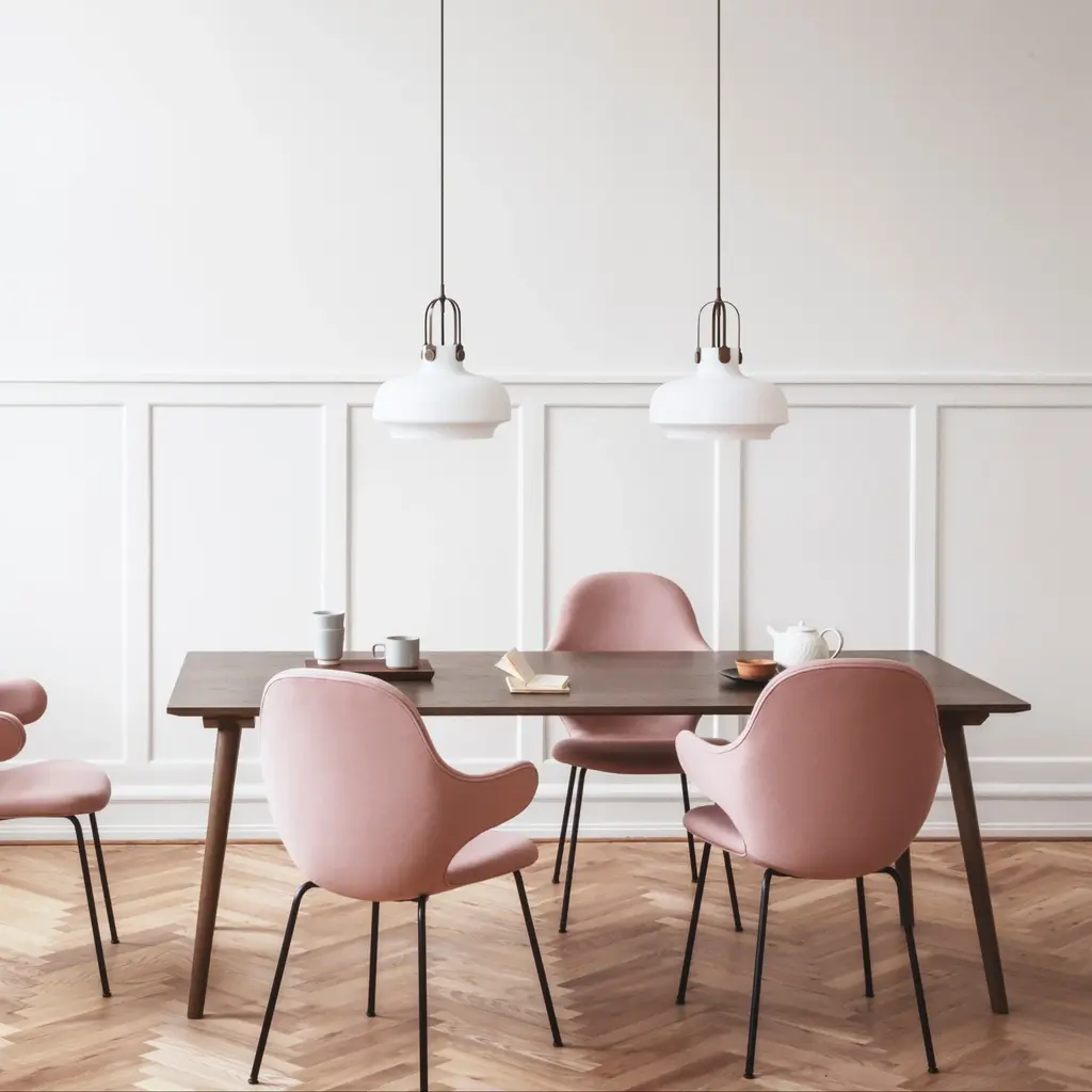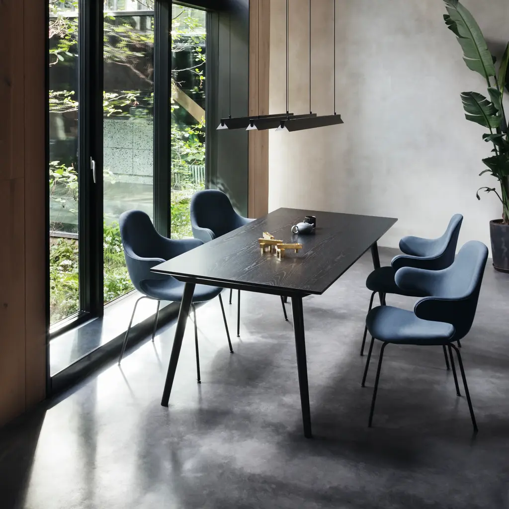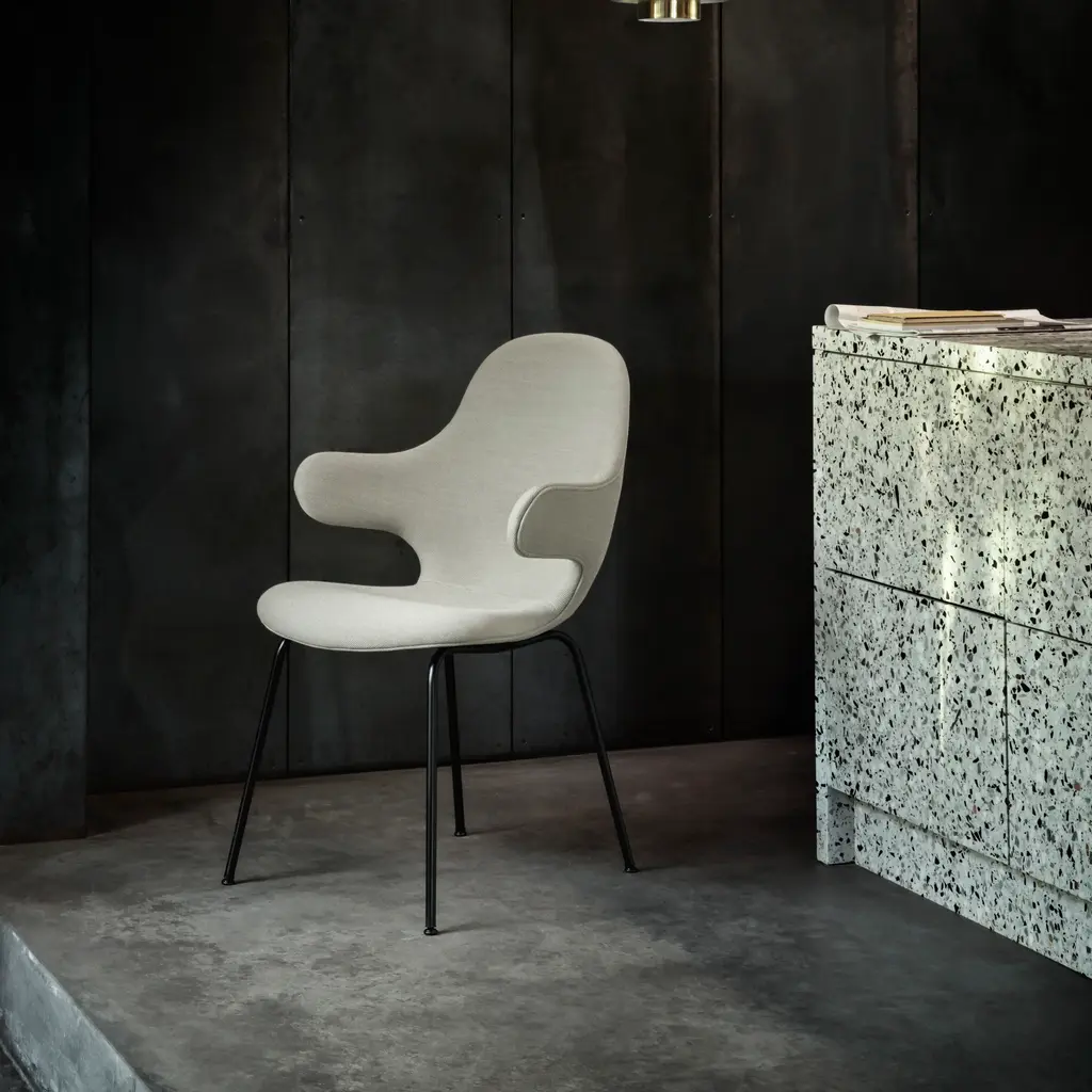 Visually and metaphorically, whimsy-loving designer Jaime Hayon offers an open-arm welcome with his Catch seating. The playfully serpentine shape in molded polyurethane foam provides all-embracing comfort in his chair for Copenhagen-based &Tradition. In the JH15, the graphic seat shape is offset by bent tubular steel legs for an airy feeling of lightness. And the impressive selection of upholstery options suits nearly any interior.