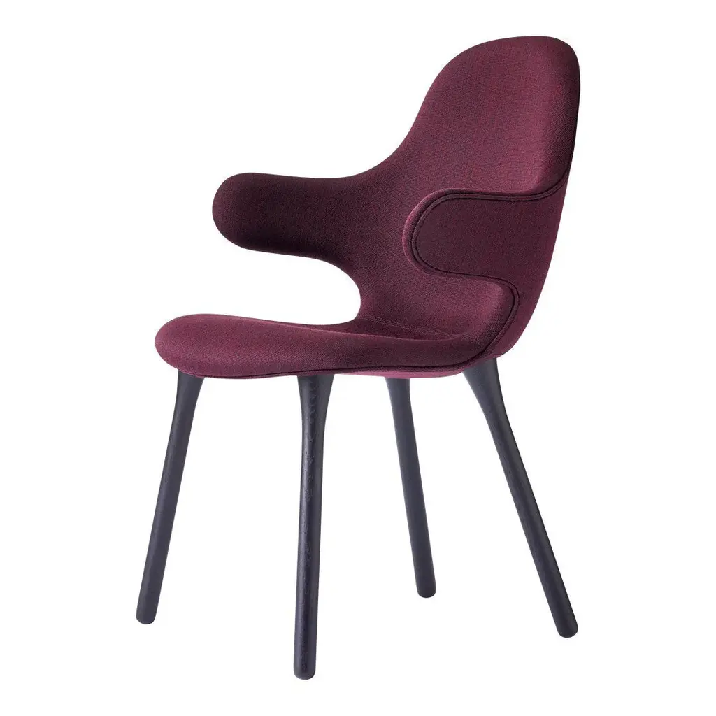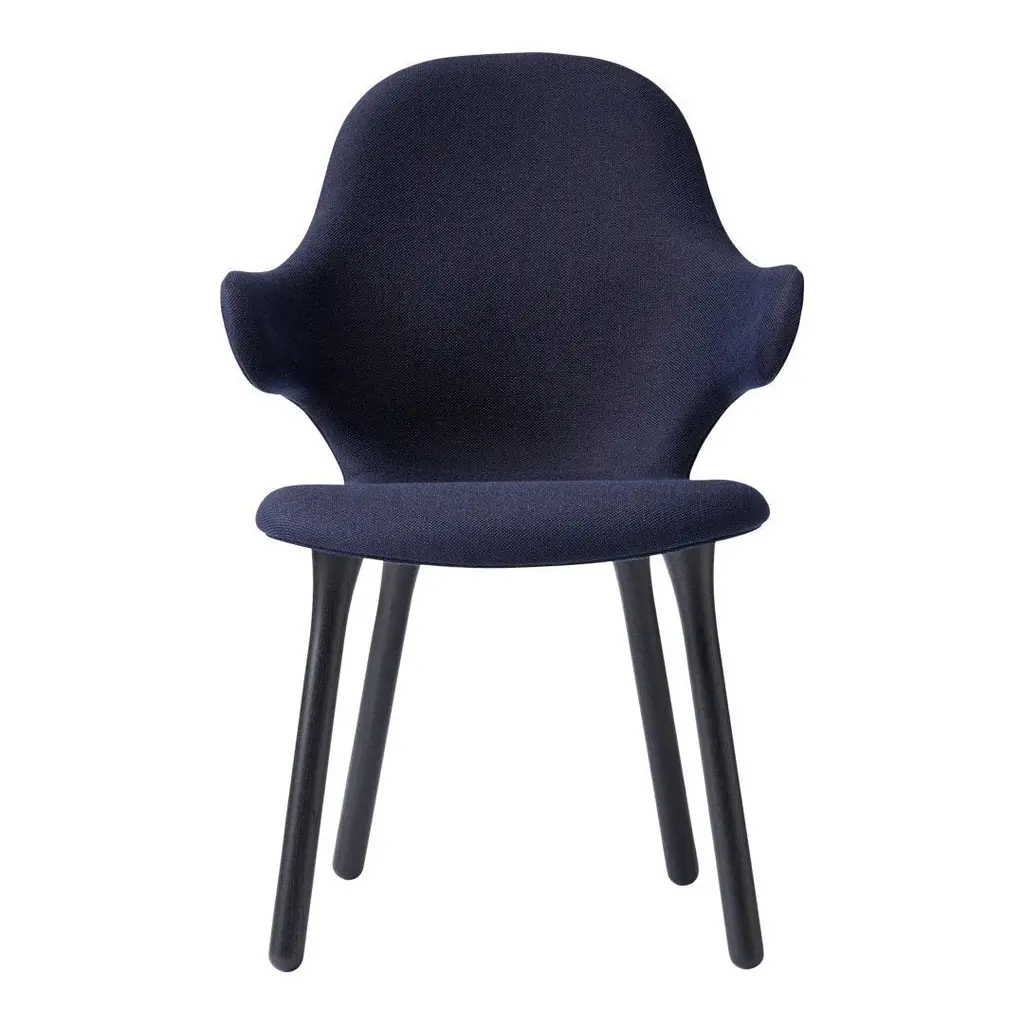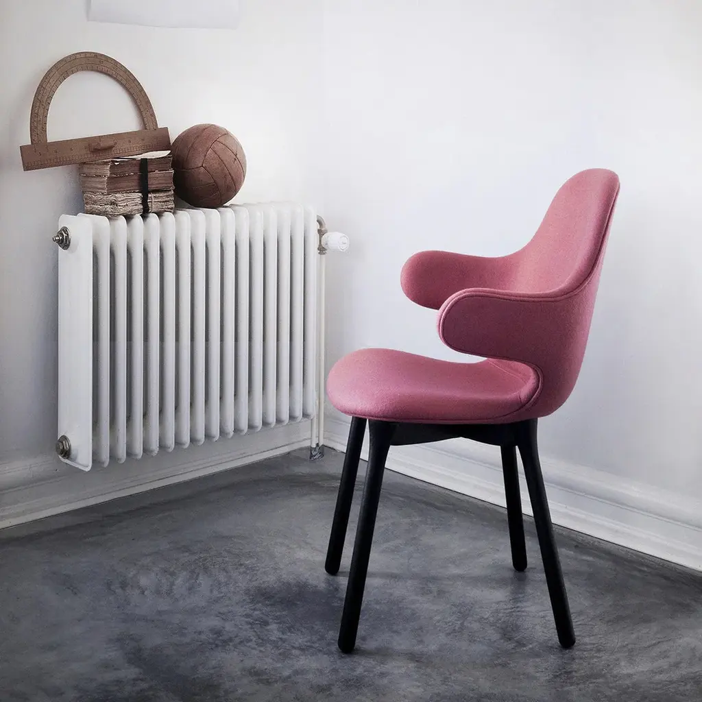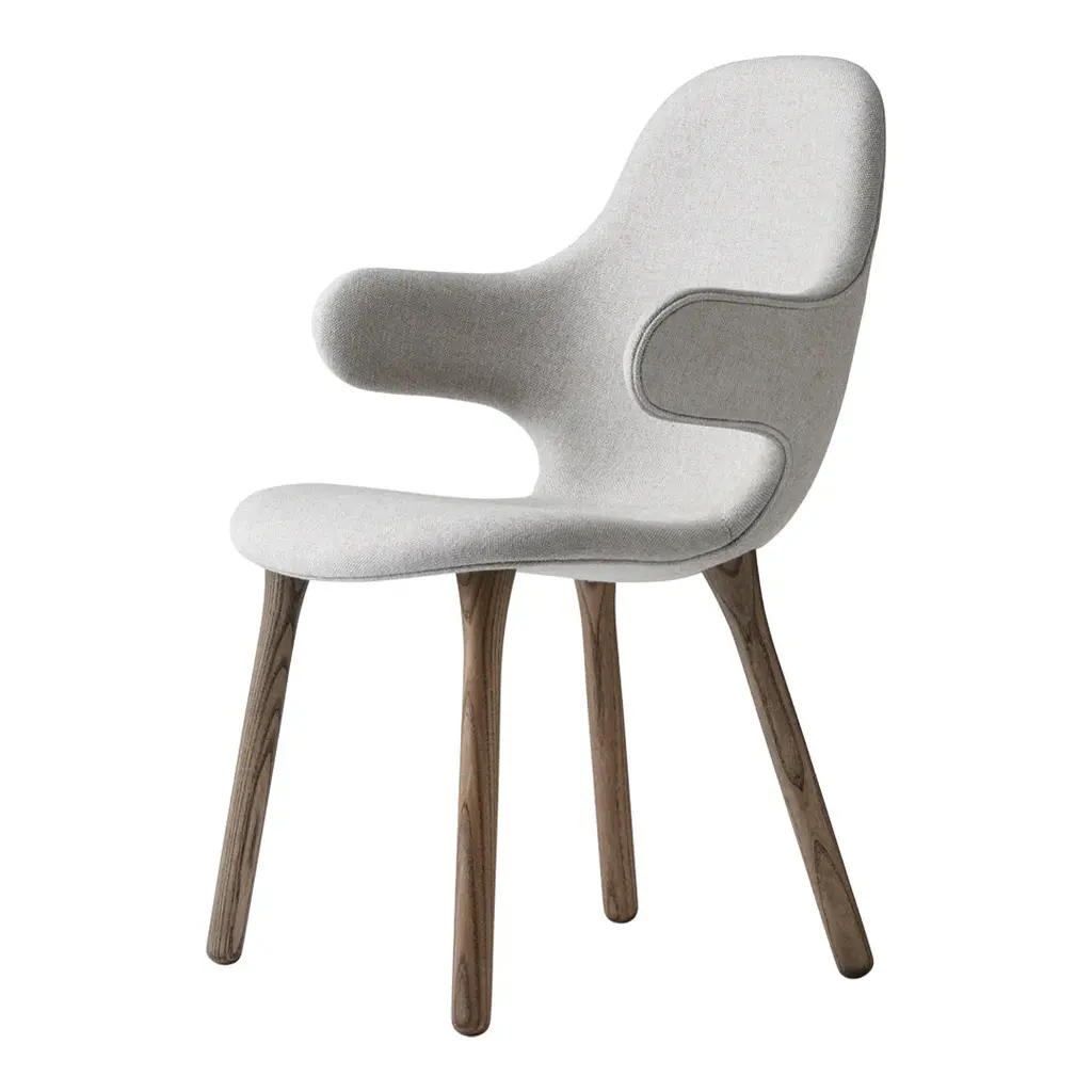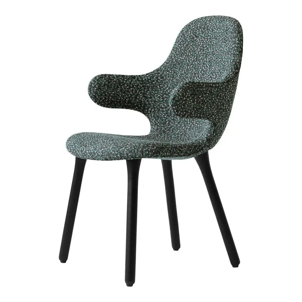 Catch, Jaime Hayon's first contribution to &Tradition's collection, is a chair that welcomes you with open arms. Its armrests extend from the shell like literal limbs, ready to embrace you as you sit down. In addition to being a witty personification, it is also an eye-catching piece of design. Serpentine lines give it a playful lightness that is counterbalanced by a sturdy, well-balanced base and legs that ensure maximum comfort. The shell consists of molded polyurethane foam with a metal frame and glass fiber reinforcements. Catch is also available with black lacquered legs and in several other premium fabrics, leathers, and colors. Please call us to review all options.