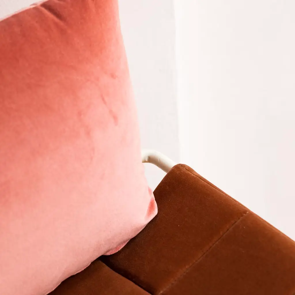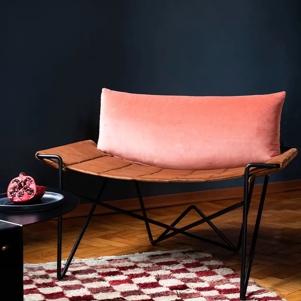 The Caterina Velvet Lounge Chair is a bold and feminine seating piece designed by Luca Cellino. Its distinctive iron frame, bent by hand and lacquered, features sharp, sculptural lines that strike a balance between strength and sensuality. Upholstered in elegant two-tone pink and red cotton velvet, the armchair showcases a refined matelassé quilting on the seat, enhancing its luxurious texture. The detachable cushions offer flexibility, allowing the look of the chair to be easily refreshed. Each Caterina armchair is handcrafted, making every piece one of a kind. Customization options are available, please contact the Concierge for more information.