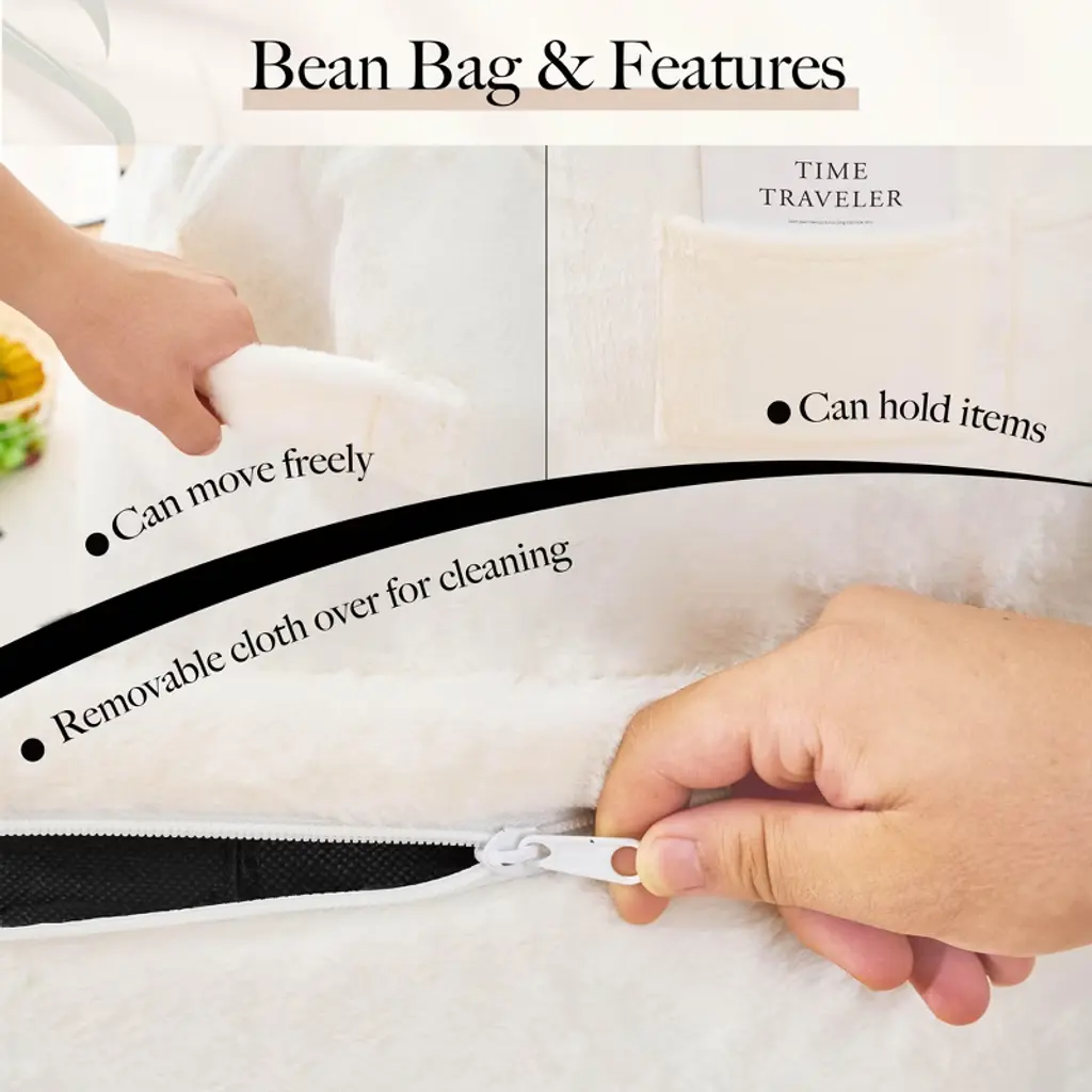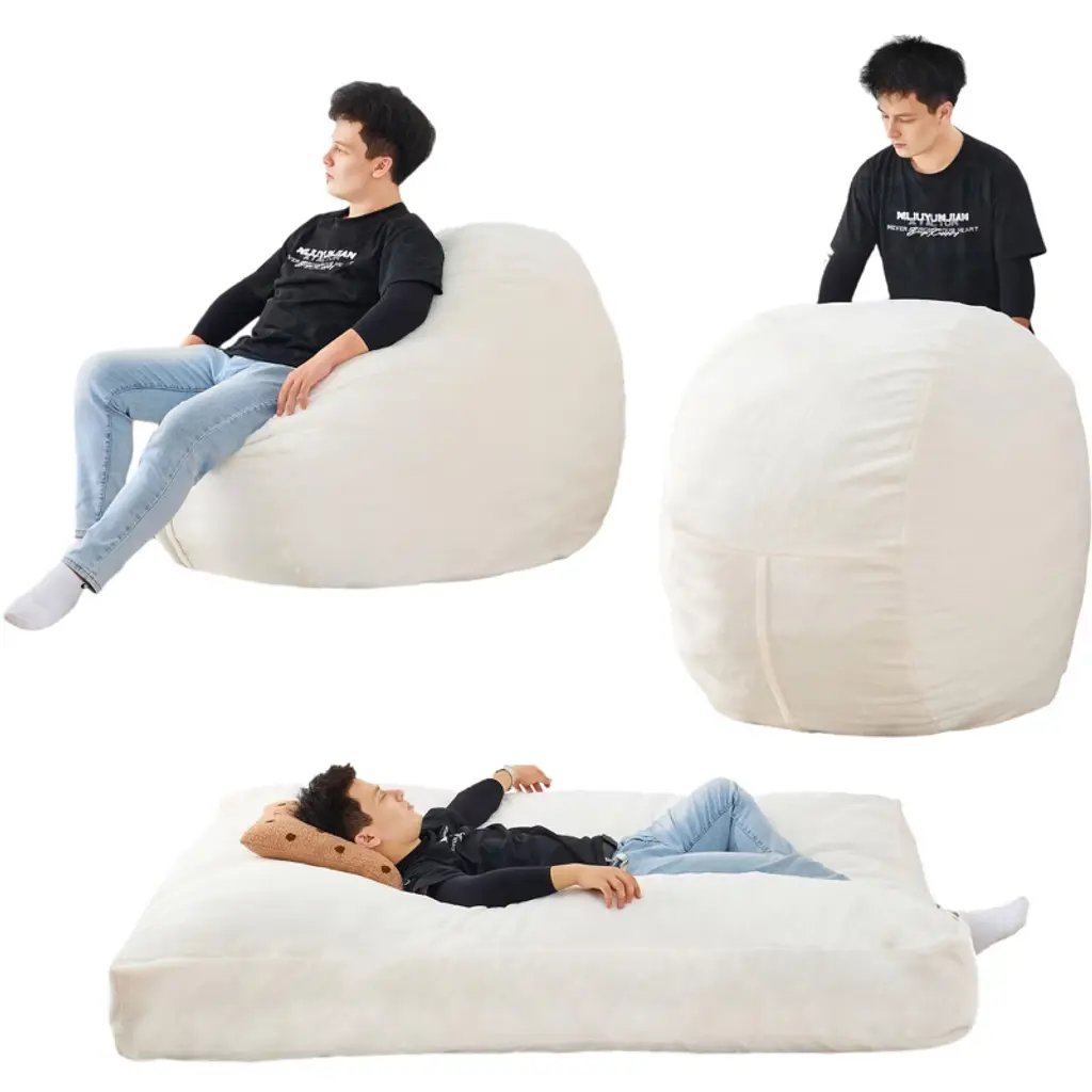 Cavinas Large Convertible Bean Bag Chair Bed For Adults & Kids,soft Bean Bag Couch,accent Sofas For Living Room,white