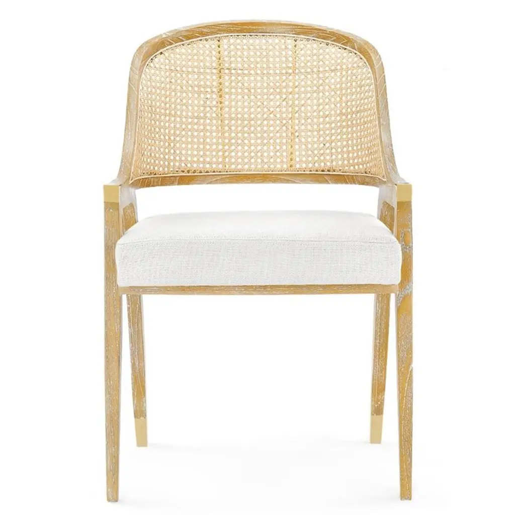 Designer and author of To Your Taste, and Black & White (and a Bit in Between) from Clarkson Potter publishers, and Island Whimsy from Rizzoli Publishers, Celerie Kemble has cultivated a portfolio which has included homes and commercial spaces across the United States and the Caribbean, many of which have been featured in Architectural Digest, House Beautiful, Veranda, Elle Decor, Traditional Home, Luxe, Florida Design, Better Homes and Gardens, Country Living, The Wallstreet Journal, the New York Times, and more. In collaboration with Woodbridge Furniture, one of the industry's highest quality makers of modern heirloom furnishing, Celerie designed this beautiful bespoke collection with custom hardware, brass details and sculptural shapes. A handsome chair adapted from French Empire styles from the 19th Century. A shaped back is incised with linear natural cane between curved arms above an upholstered seat elevated on tapering legs. Assembly Required? No