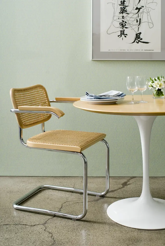 Informed by the rationalist ideals of the Bauhaus, Marcel Breuer’s revelatory use of material and simple cantilever design resulted in one of the world’s most iconic chairs.The Cesca Chair has a rare, almost innocuous, simplicity to its design—linearity balanced by subtle curves; a graphic juxtaposition of industrial and natural materials; and a cantilevered form that seems to float in thin air. In 1928 it was an international sensation. Nothing like it existed at the time, and its iconic form proves to be effortlessly contemporary as the decades roll by. Originally known as the B32, the chair was later renamed “the Cesca” after Marcel Breuer’s daughter, Francesca.