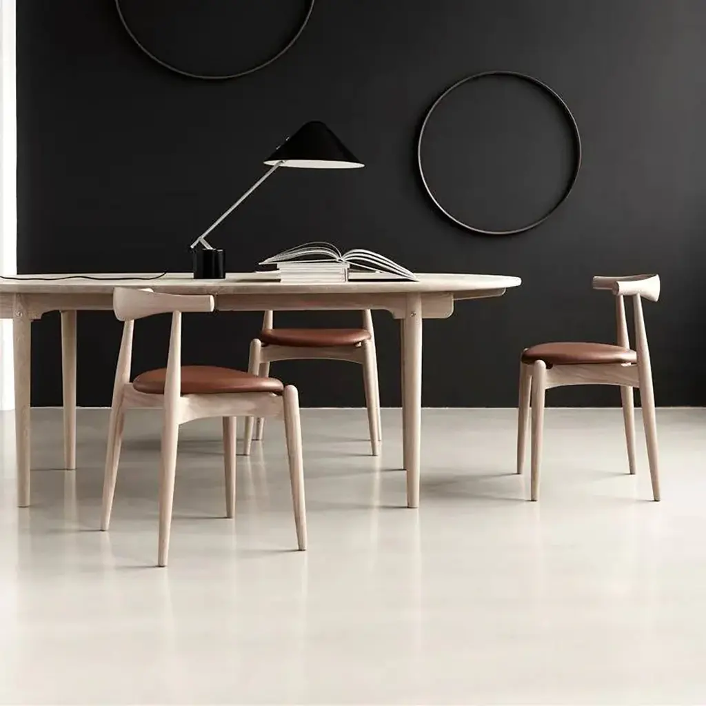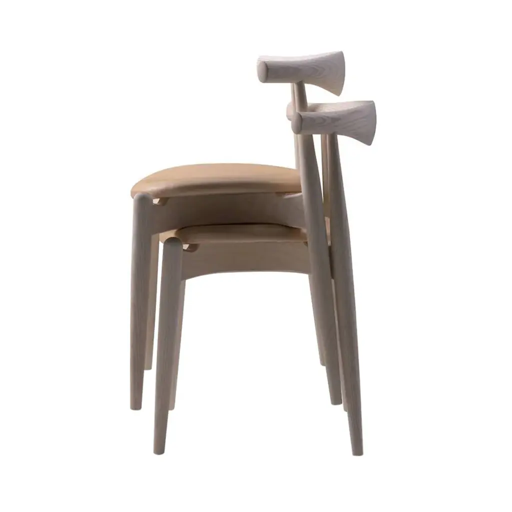 Regarded as a modern classic, Hans J. Wegner’s 1956 stackable chair gets a new interpretation in a range of beech finishes with a seat clad in leather or a textile. Only introduced by Carl Hansen & Son in 2005, its signature steam-bent backrest is crafted from a single piece of solid wood to lend lower back and elbow support and afford varied sitting positions.