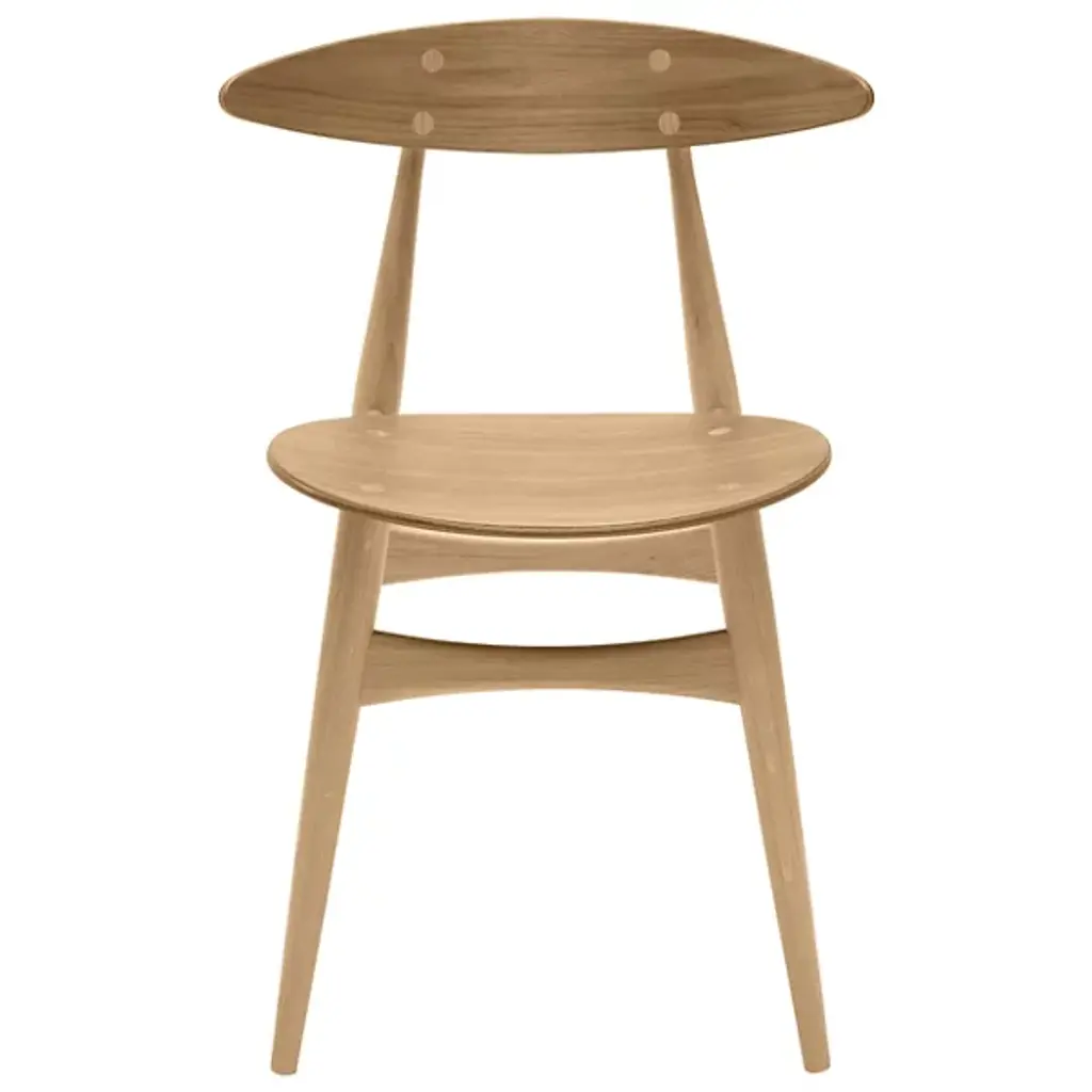 First designed by Hans J. Wegner in 1957, the Carl Hansen CH33T Chair was produced for 10 years before being taken out of production. Reintroduced in 2012, the CH33T features rounded, organic forms, such as the curved hardwood laminate seat and back. Made out of solid wood, the splayed, tapered legs and cross pieces are thickest where they are load-bearing and slender where they are not.