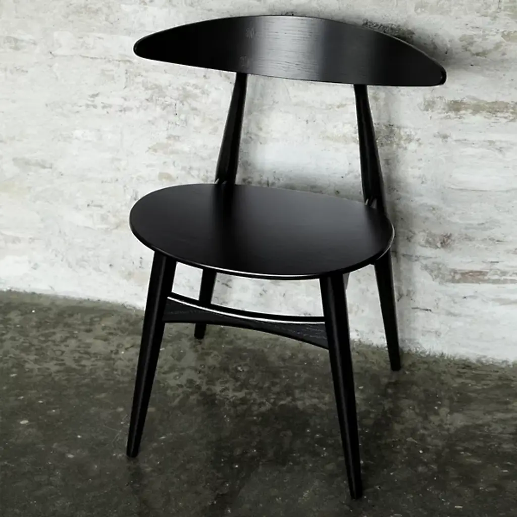 First designed by Hans J. Wegner in 1957, the Carl Hansen CH33T Chair was produced for 10 years before being taken out of production. Reintroduced in 2012, the CH33T features rounded, organic forms, such as the curved hardwood laminate seat and back. Made out of solid wood, the splayed, tapered legs and cross pieces are thickest where they are load-bearing and slender where they are not.