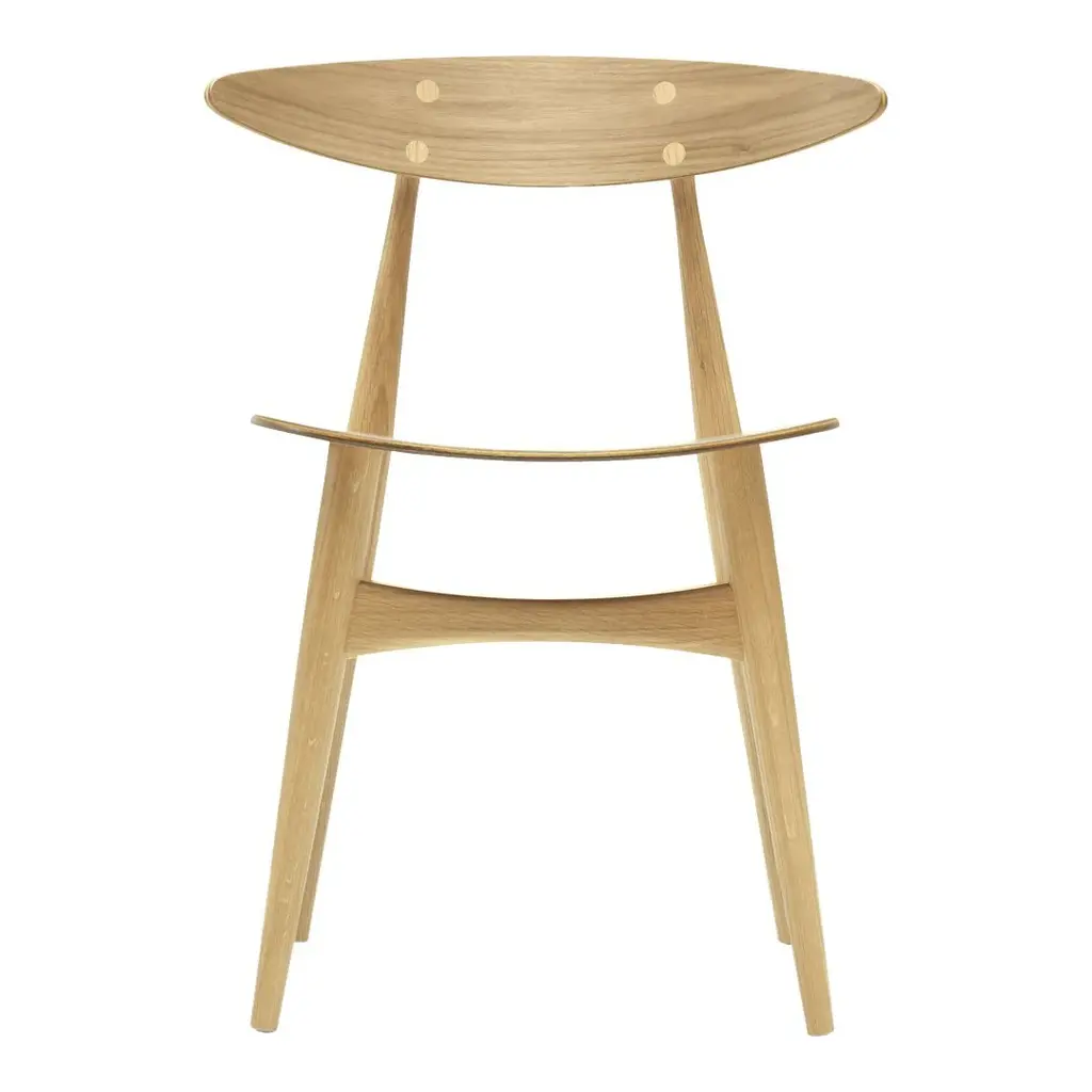 The Wegner CH33T is an all-wood version of the famous Wegner CH33 Chair A solid wood frame with a veneer seat and back - a contrasting wood can be chosen for the back but the buttons on the back are always the same wood as the frame. LIMITED EDITION: To celebrate Wegner's 100th birthday, Carl Hansen & Son has released a special walnut / oak combination CH33T Chair. This chair features an walnut back/seat and a oak frame to highlight Wegner's extraordinary understanding of wood.