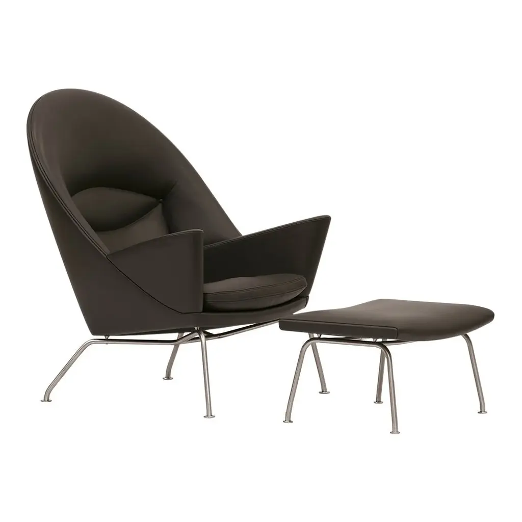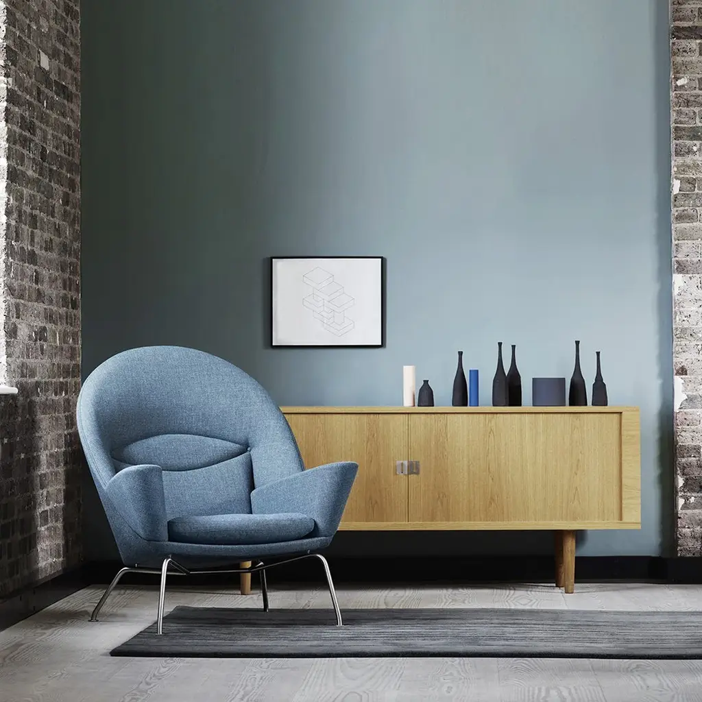 Carl Hansen & Son's close co-operation with Hans J. Wegner's Studio has made it possible to recreate an original Wegner easy chair from a clay model and drawings found in the Studio's archives. Called CH468 Oculus, the chair was created by Wegner in 1960 but has never been in production - until now. The Studio also had what is, as far as is known, the only existing prototype of the chair. Along with some photos, the prototype inspired us to begin production. CH468 is a sculptural easy chair whose construction, back and neck support afford a variety of very comfortable ways to sit. Our craftsmen build the interior frame from wood, just as Wegner designed it. The legs, in brushed or powder-coated stainless steel, create a balanced contrast to the capacious upholstery
