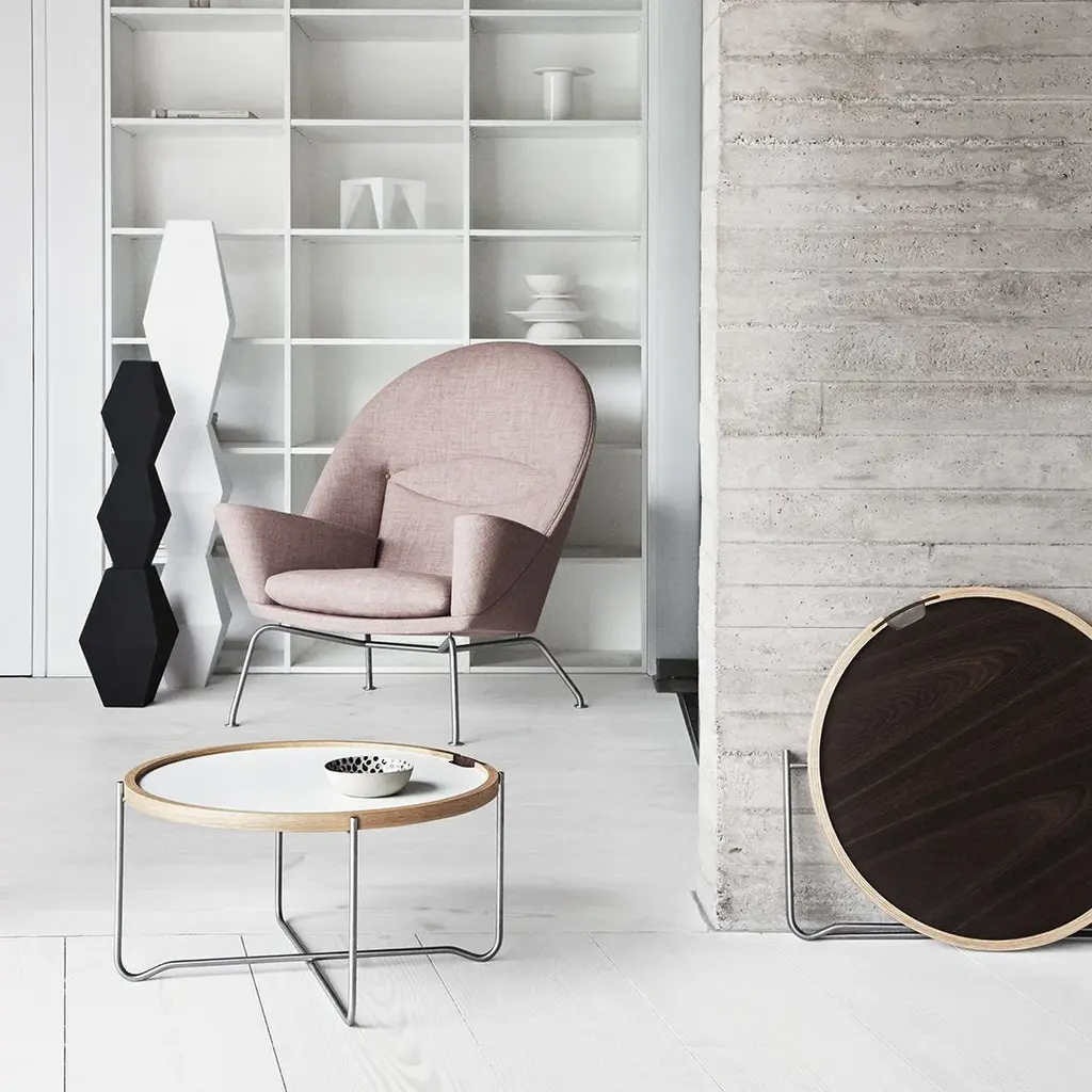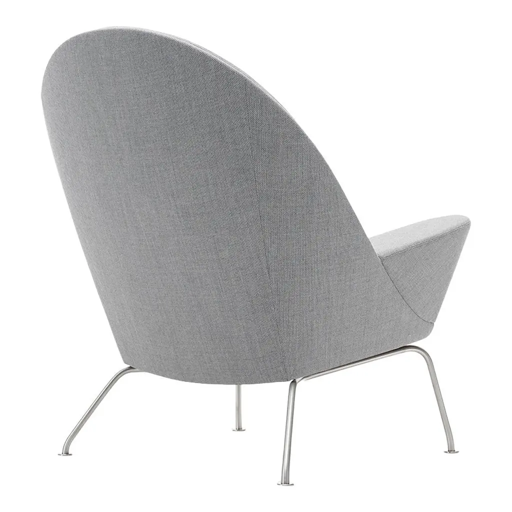 Carl Hansen & Son's close co-operation with Hans J. Wegner's Studio has made it possible to recreate an original Wegner easy chair from a clay model and drawings found in the Studio's archives. Called CH468 Oculus, the chair was created by Wegner in 1960 but has never been in production - until now. The Studio also had what is, as far as is known, the only existing prototype of the chair. Along with some photos, the prototype inspired us to begin production. CH468 is a sculptural easy chair whose construction, back and neck support afford a variety of very comfortable ways to sit. Our craftsmen build the interior frame from wood, just as Wegner designed it. The legs, in brushed or powder-coated stainless steel, create a balanced contrast to the capacious upholstery