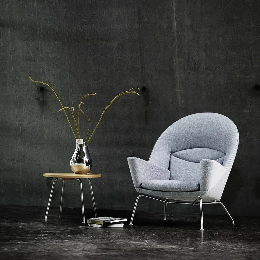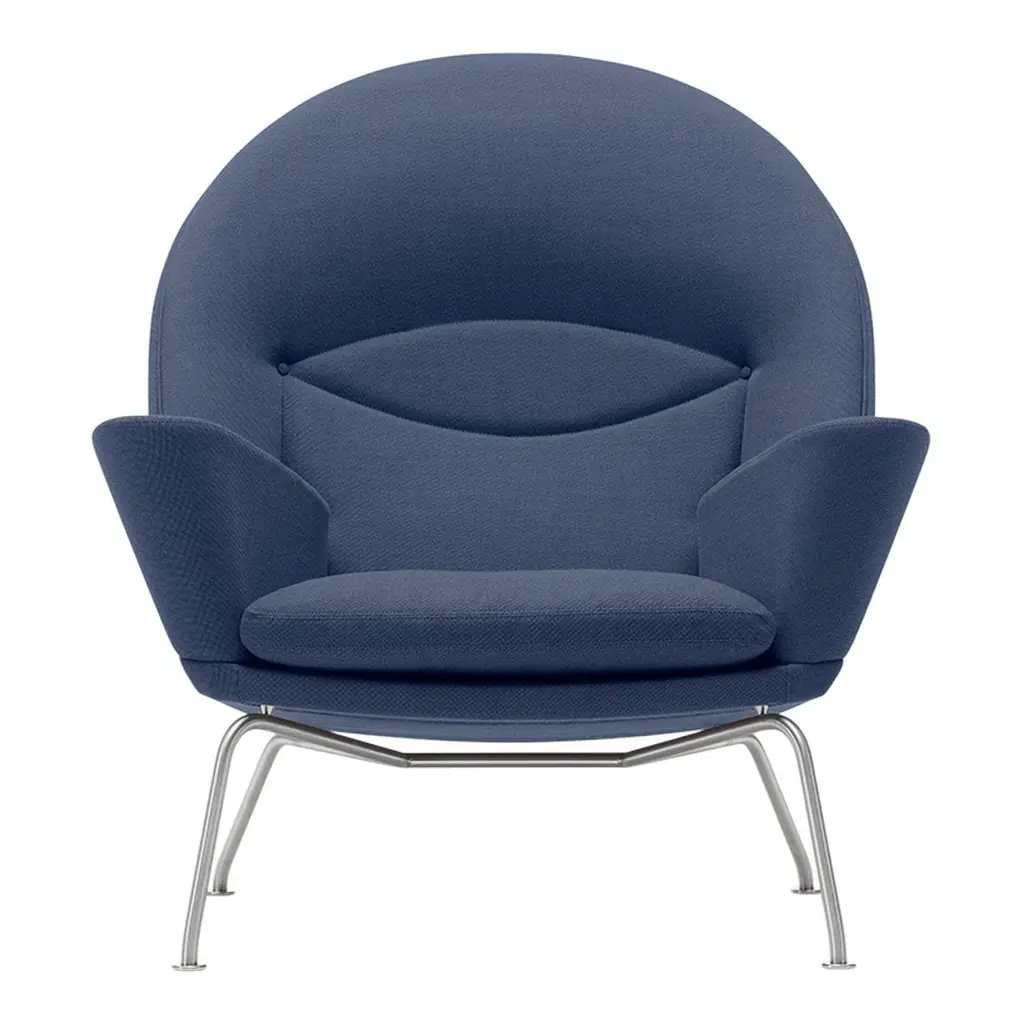 Carl Hansen & Son's close co-operation with Hans J. Wegner's Studio has made it possible to recreate an original Wegner easy chair from a clay model and drawings found in the Studio's archives. Called CH468 Oculus, the chair was created by Wegner in 1960 but has never been in production - until now. The Studio also had what is, as far as is known, the only existing prototype of the chair. Along with some photos, the prototype inspired us to begin production. CH468 is a sculptural easy chair whose construction, back and neck support afford a variety of very comfortable ways to sit. Our craftsmen build the interior frame from wood, just as Wegner designed it. The legs, in brushed or powder-coated stainless steel, create a balanced contrast to the capacious upholstery