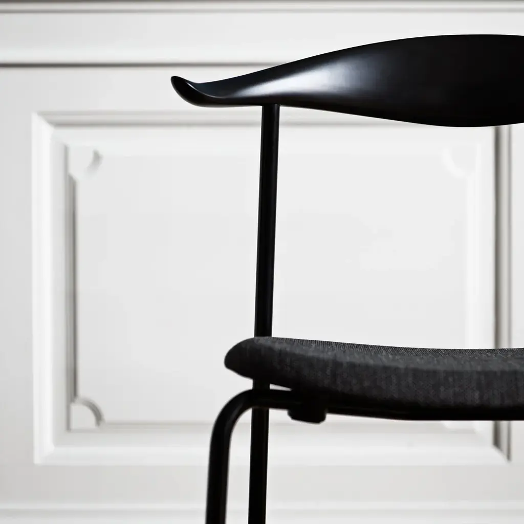 CH88P Chair : 100 years after his birth, Hans J. Wegner is still creating new pieces. Wegner first designed the CH88 Chair in 1955 and it has been stuck in prototype status until now. Carl Hansen & Son is launching the CH88 Chair as part of an ongoing celebration to mark Wegner's Birthday: he would have been 100 in 2014. The CH88 Chair features a steam-bent wooden backrest for support with slight curves at the ends to create a natural resting place for your arms. An oval-shaped wooden seat sits on straight steel legs to create a light, organic and industrial feel. As a bonus, the CH88 is a stackable chair, adding to its incredible versatility. This Wegner CH88P Chair is available here with a painted frame in all of Carl Hansen & Son (CHS) Colors in a painted lacquer, with a seat in any of Carl Hansen & Son's fabrics or leathers. All colored CH88 Chairs listed here are made of beech wood, which shows very little wood grain through the paint.