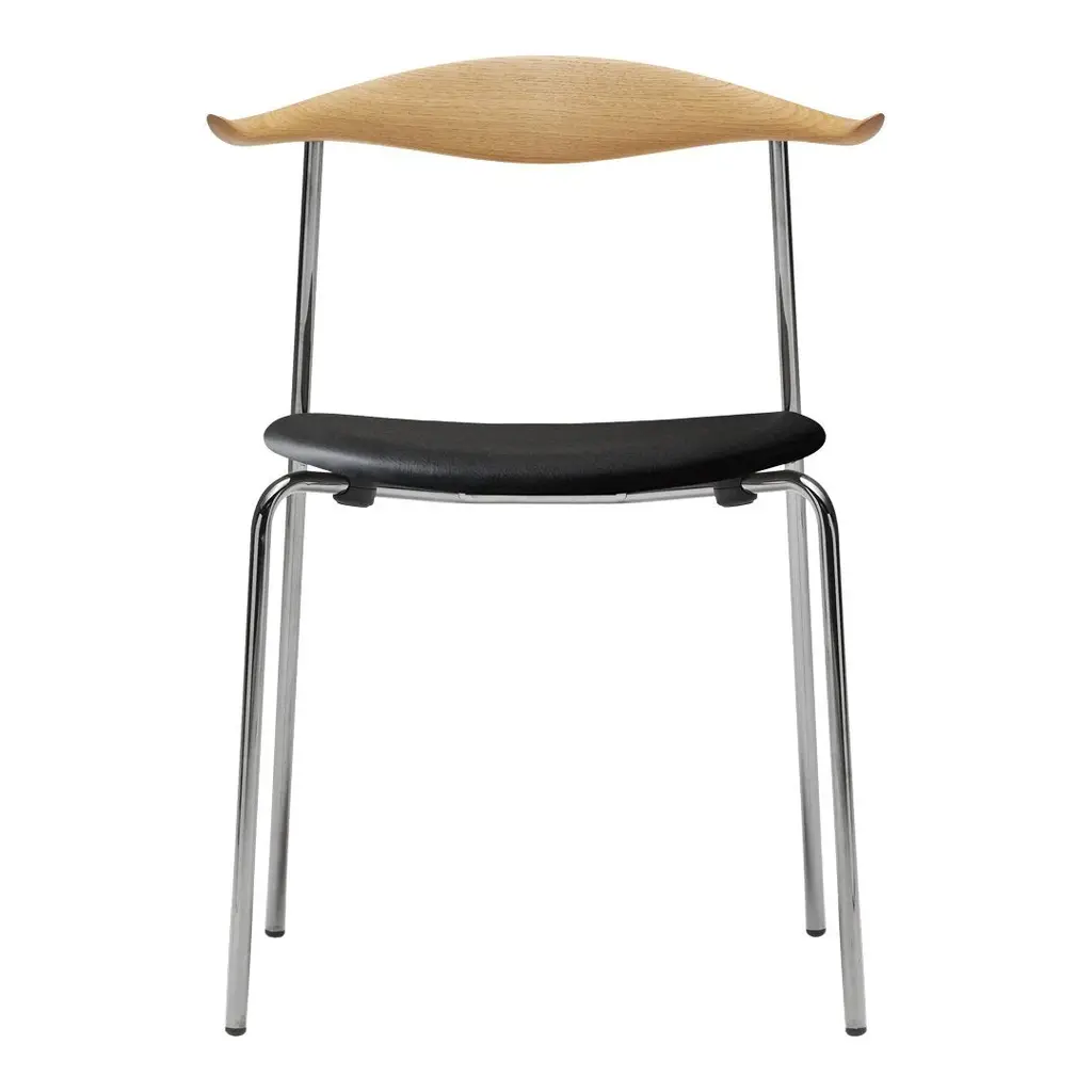 Wegner CH88P Stackable Chair : 100 years after his birth, Hans J. Wegner is still creating new pieces. Wegner first designed the CH88 Chair in 1955 and it has been stuck in prototype status until now. Carl Hansen & Son is launching the CH88 Chair as part of an ongoing celebration to mark Wegner's Birthday: he would have been 100 in 2014. The CH88 Chair features a steam-bent wooden backrest for support with slight curves at the ends to create a natural resting place for your arms. An oval-shaped wooden seat sits on straight steel legs to create a light, organic and industrial feel. As a bonus, the CH88 is a stackable chair, adding to its incredible versatility. This Wegner CH88P Chair is available here with a stainless steel frame, fabric or leather seat and a wood backrest in a variety of finishes.