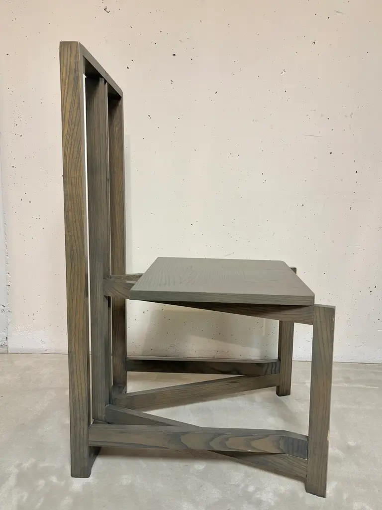Philippe Parent chair, circa 1980. Stained whitewashed oak. Good condition, some marks. Plaque present. 3 chairs available. This piece has an attribution mark, I am sure that it is completely authentic and take full responsibility for any authenticity issues arising from misattribution
