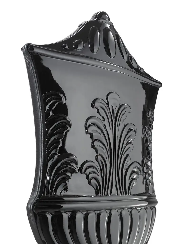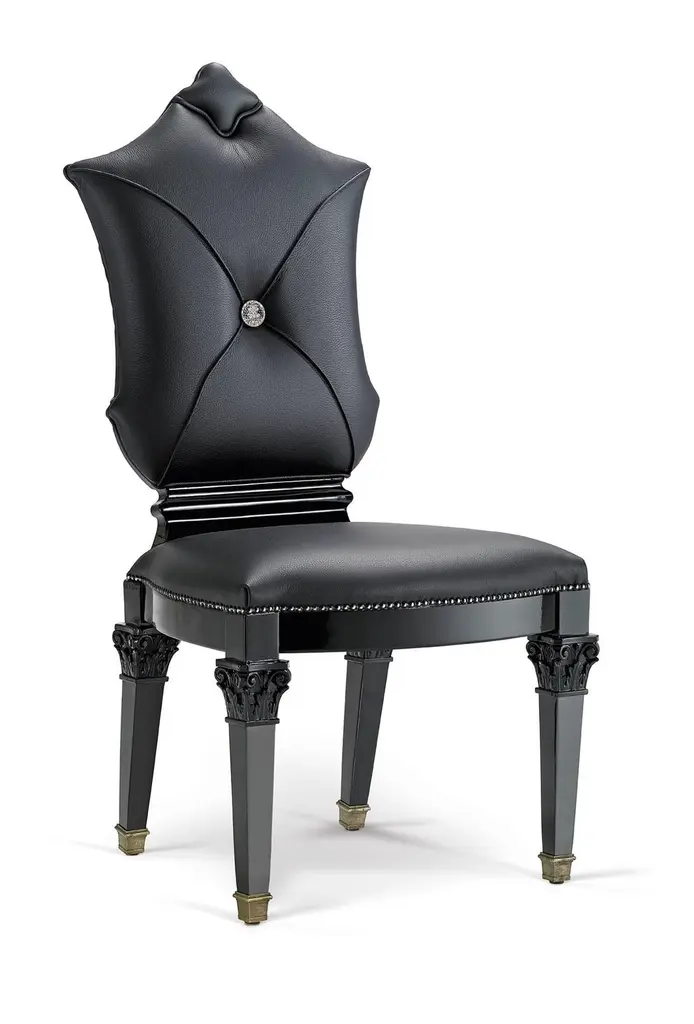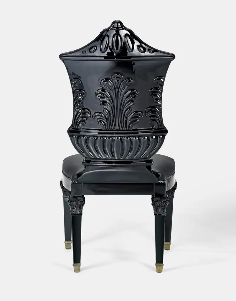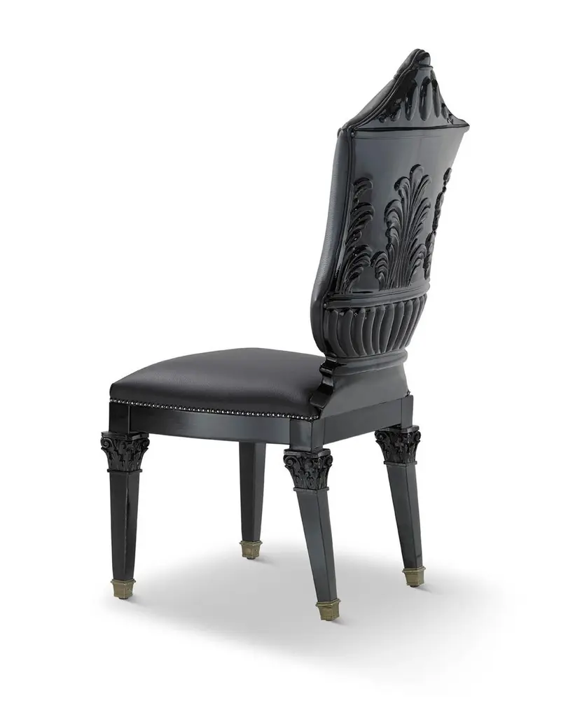 Chair Carved Solidwood Black Lacquer Finish Dakened Feet Black Caps Leather