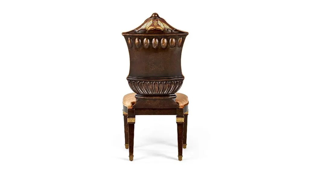 Chair Carved Solidwood Distressed Fonish Bronzed Feet Caps Mosaic Insert Legs