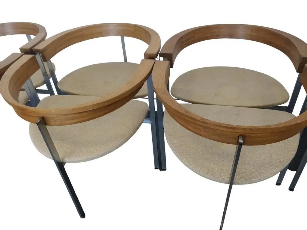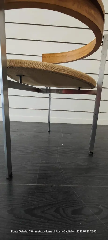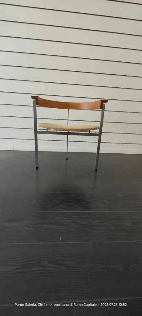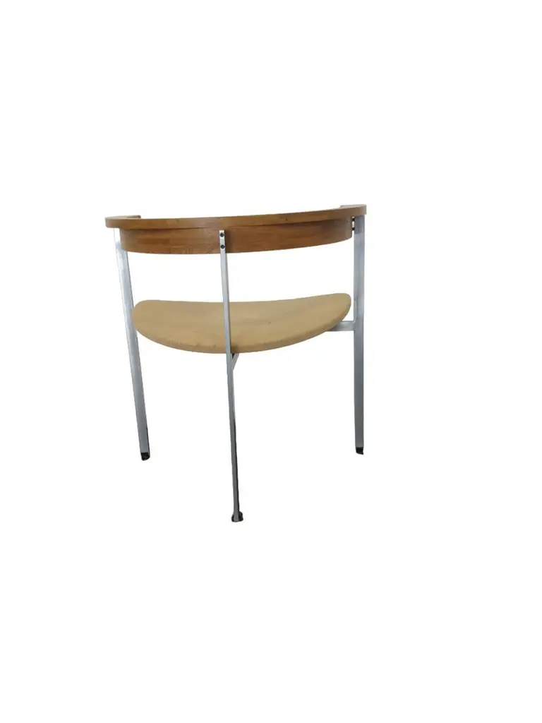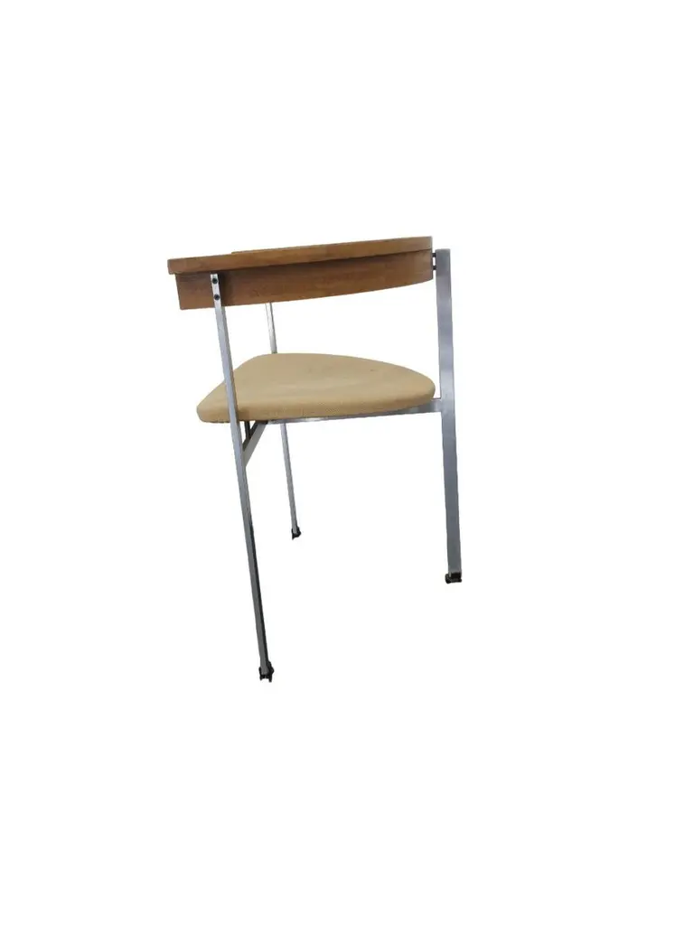 Chair PK11, designed in 1957 by Poul Kjaerholm and produced by E. Kold Christensen, marked by the manufacturer.Ash backrest and a linear three-legged structure in chromed steel.With an attribution mark.Some stainsPoul Kjærholm (1929–1980) was a Danish designer. Born in Østervrå, Denmark, Kjærholm began his career as a cabinetmaker's apprentice with Gronbech in 1948, attending the Danish School of Arts and Crafts in Copenhagen in 1952. From the mid-1950s he worked for his friend Ejvind Kold Christiansen, for whom he produced an extensive range of his furniture. In 1963, he designed the PK_54 table. In 1958, he attracted international acclaim for his contributions to the 'Formes Scandinaves' exhibition in Paris and the award of the legendary 'Lunning Award'. In both 1957 and 1960, he won the Grand Prize at the Milan Triennale.Poul Kjærholm