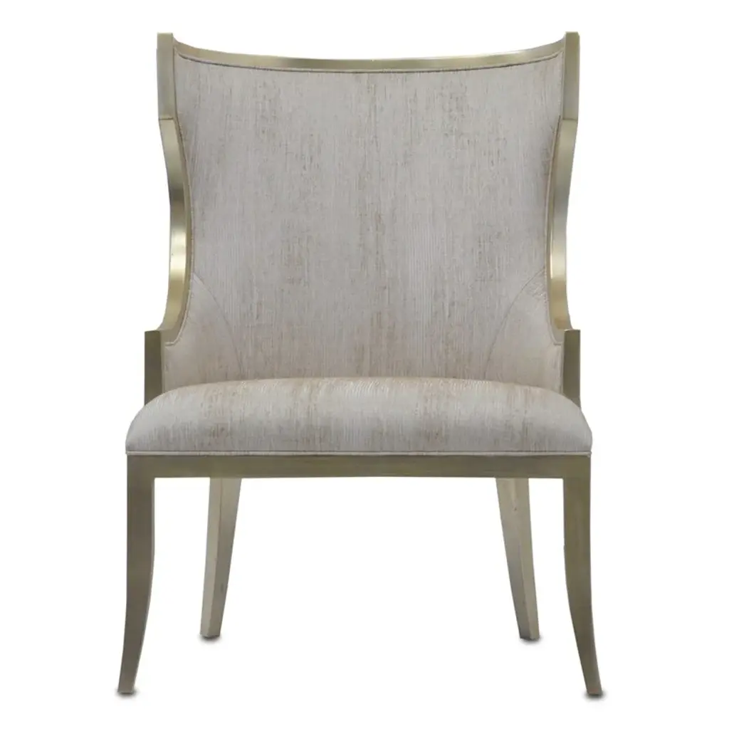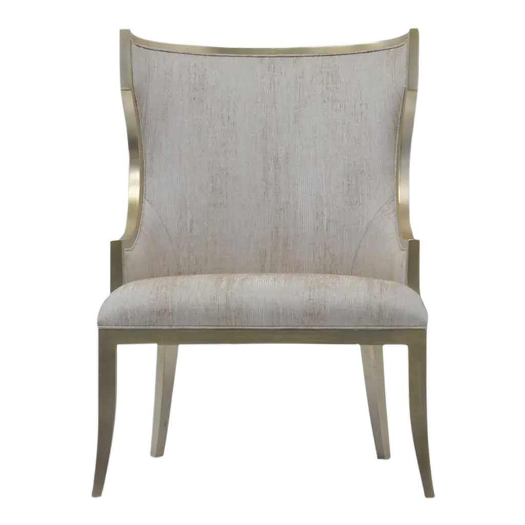 Chair With Wide Curved Backrest In Art Deco Style With Leather And Wood