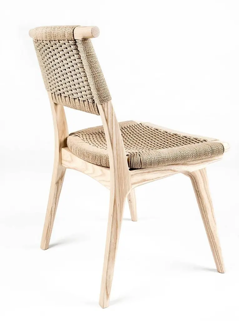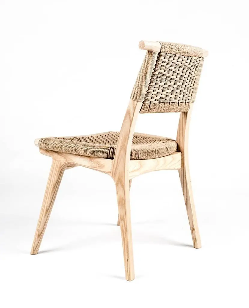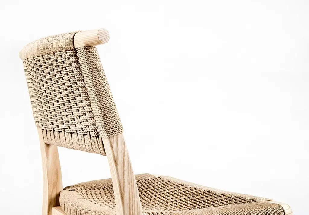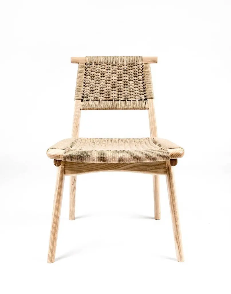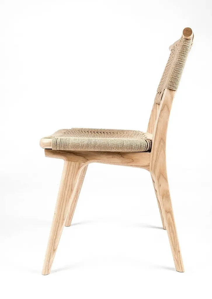 Mid-century inspired hardwood and woven Danish Cord Rian Bullhorn dining or office chair.The lead time provided is an estimate and may extend up to 12 months. If you require delivery by a specific date, we kindly recommend inquiring prior to purchase to ensure availability.Crafted with meticulous attention to detail, the Rian Bullhorn Chair showcases a distinctive bullhorn-shaped backrest that seamlessly blends style with timeless functionality. Constructed from high-quality, sustainably sourced materials, each Rian chair is a testament to Semigood Design’s commitment to both craftsmanship and environmental responsibility. Whether as a standalone statement piece or as part of a curated ensemble, the Rian Bullhorn Chair invites you to sit back and relax. Quantity discounts available, please inquire. Can be made in any domestic or exotic hardwood. Danish Cord comes in Kraft (natural), Black and White.All of our goods are made by hand, made to order and fully customizable.