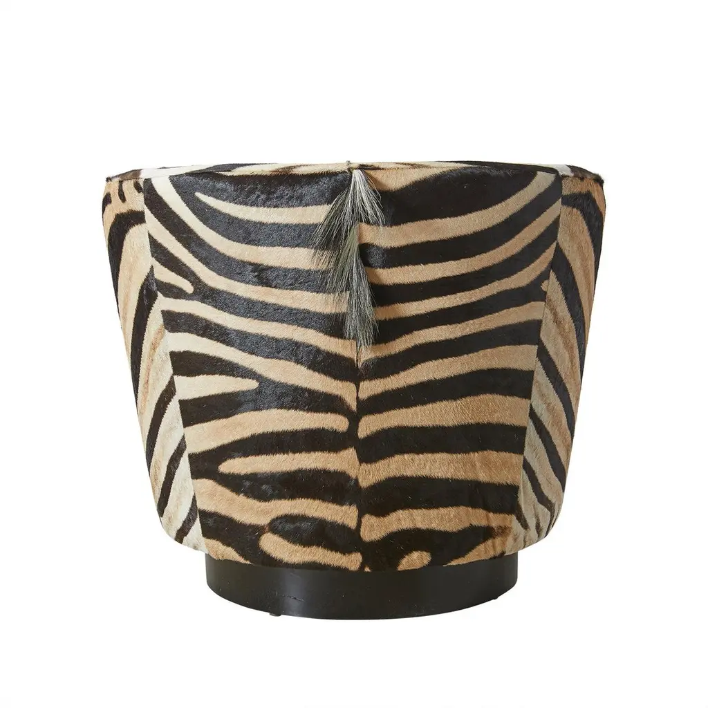Genuine zebra hide creates an occasional chair sure to make a statement. Each chair requires two full hides to upholster and manufacture making every chair one-of-a-kind. Due to the use of natural materials, each piece is unique and may vary slightly from image shown.PRODUCT INFORMATIONDIMENSIONS: 33.5"W x 31"D x 30"HCOLOR: NaturalMADE OF: Genuine Zebra HideMADE IN: Cape Town, South AfricaNatural variation to be expected – particularly the amount of mane featured and coloration of the hide