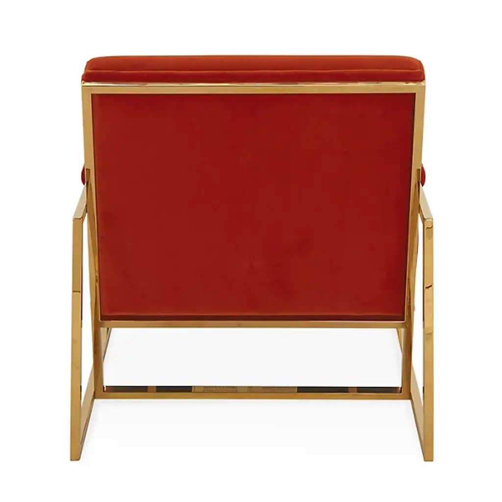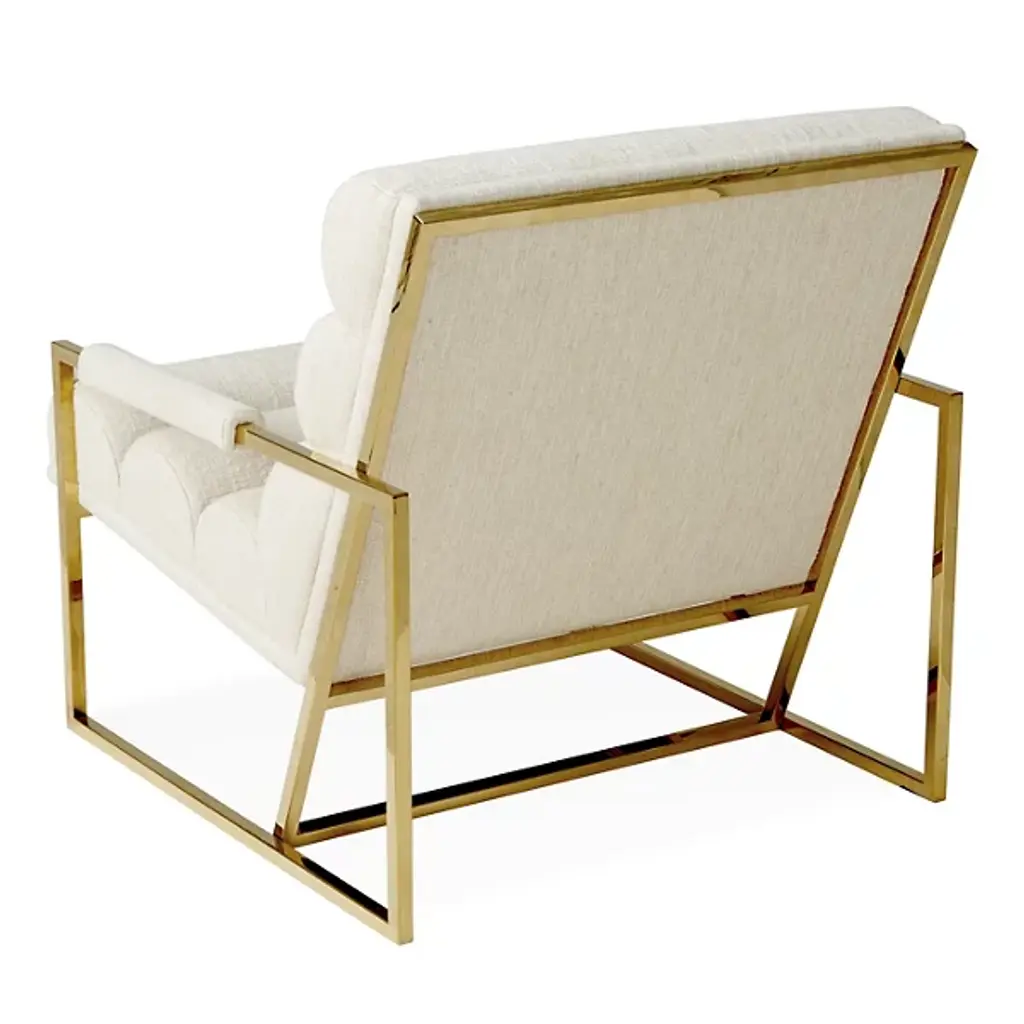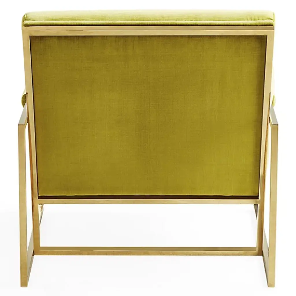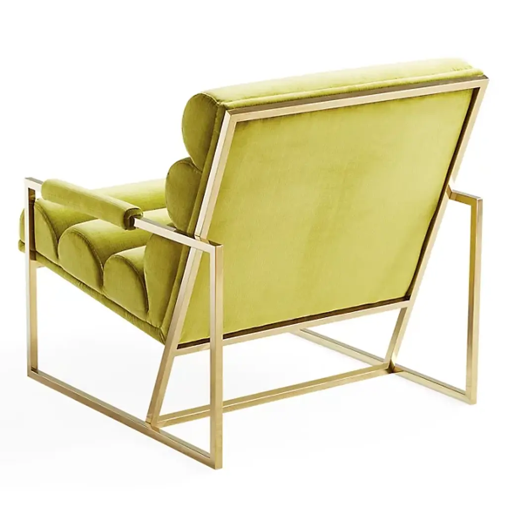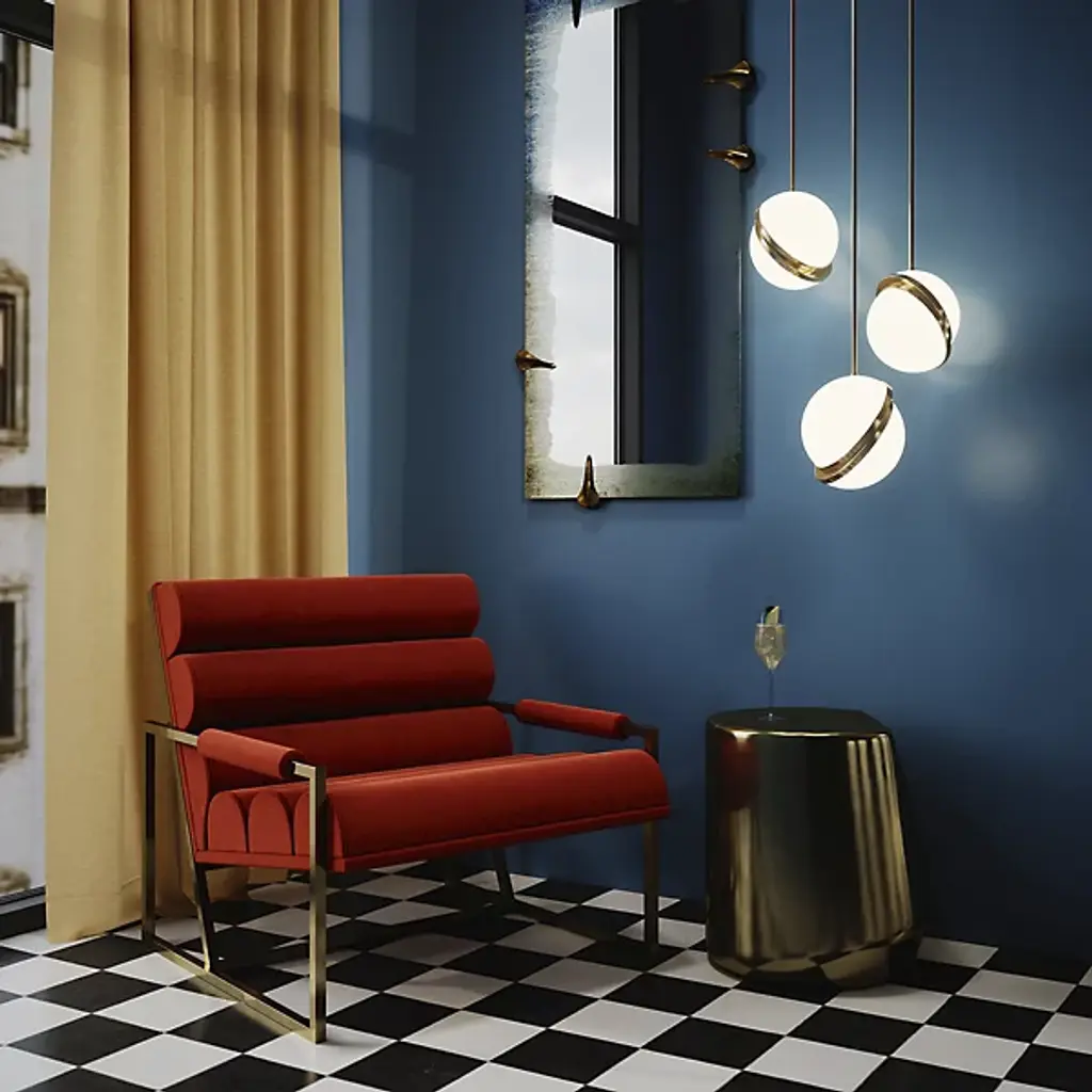 Luxurious stylings ensure the Channeled Goldfinger Lounge Chair from Jonathan Adler makes a lasting impression, relying on an angular brass frame and cozy cushions with a repeating semicylindrical pattern to capture the eye. Designed following Adler’s guiding philosophy of, "If your heirs won’t fight over it, we won't make it," the chair incorporates an inset, angular back structure that adds a stylish counterpoint to the retro glamor of the construction.
