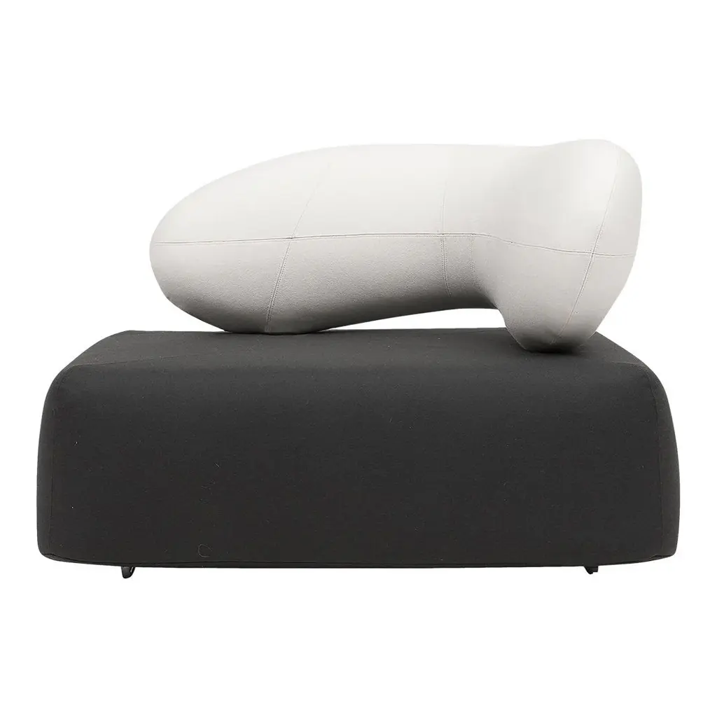 A RELAXING SCULPTURE. CHAT is designed to provide the perfect setting for people to sit and have a chat, but there are many more ways to use it. The design combines the elegant, organic round shape of the backrest with the cubic lines of the seating element for a sculptural look. The top quality materials make the comfort superb.
