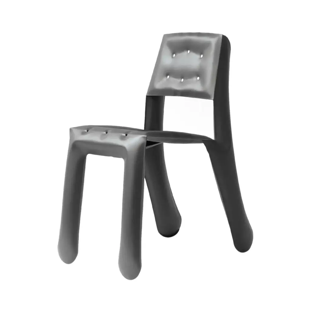 Our crush on Oskar Zieta's work continues with the limited-edition Chippensteel 0.5 Chair. These individual works of design are made from welded sheets of steel and inflated like a balloon using high-pressure air by an innovative process called FiDU (Freielnnen Druck Umformung, as in free inner-pressure deformation). The effect is metal frozen in time. No two are alike. The crumples and crushes happen spontaneously as the flats are filled. Because minimal material is needed, the stools are much lighter than they appear. Polish engineer Oskar is took several awards for the original model in the series, the Plopp Stool, and deservedly snared the Red Dot Award for it.