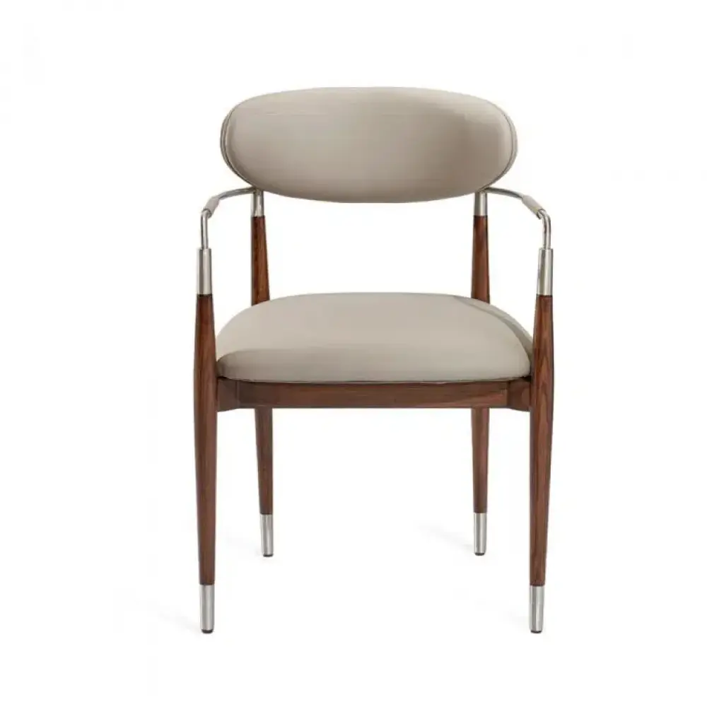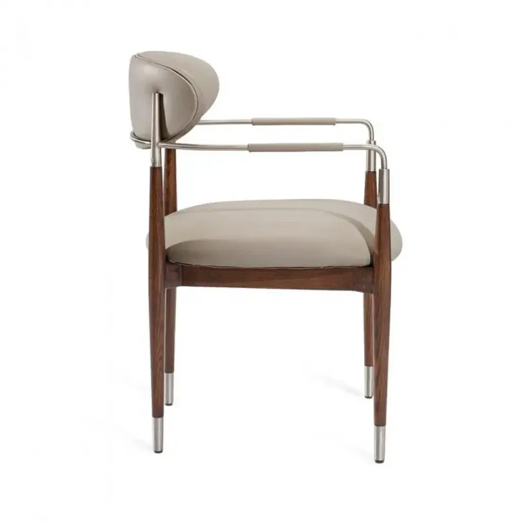 Crafted of walnut, satin nickel finished steel and faux leather, these fabulous mixed materials bring statement-making style to the Cidra Chair.