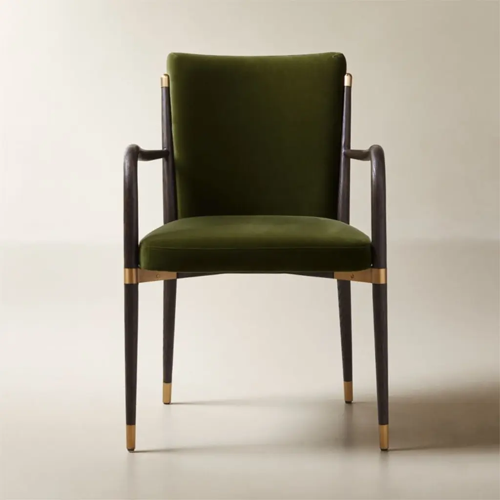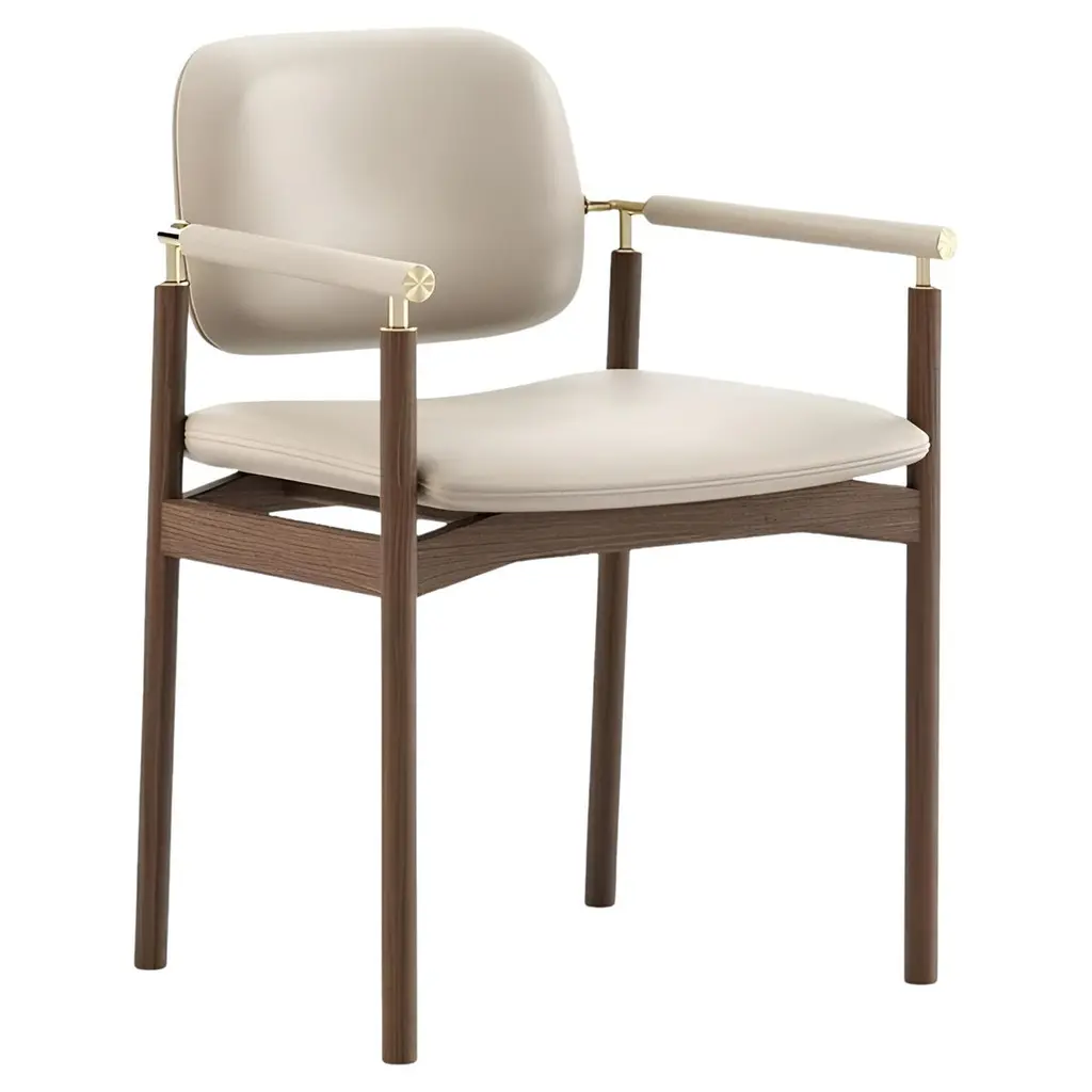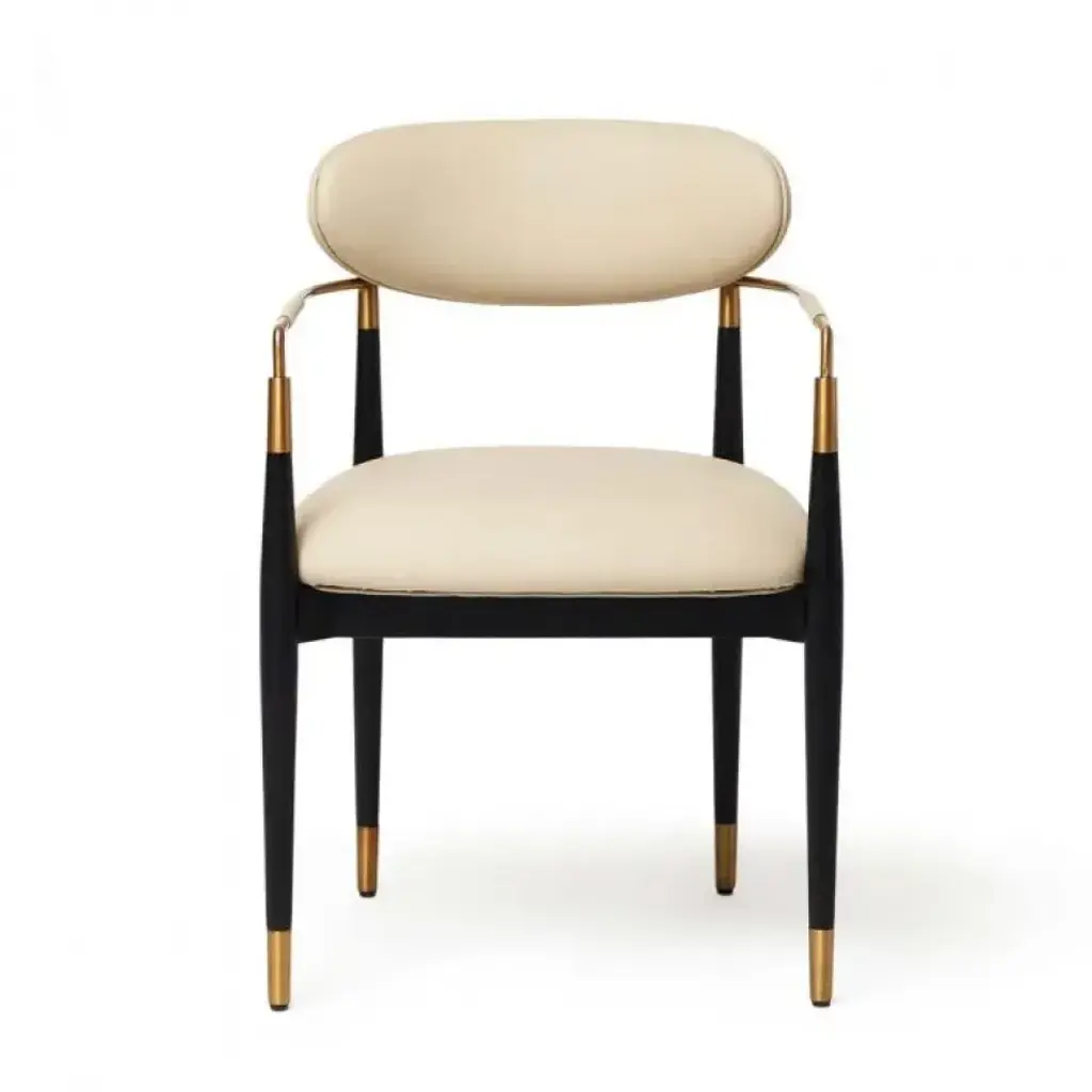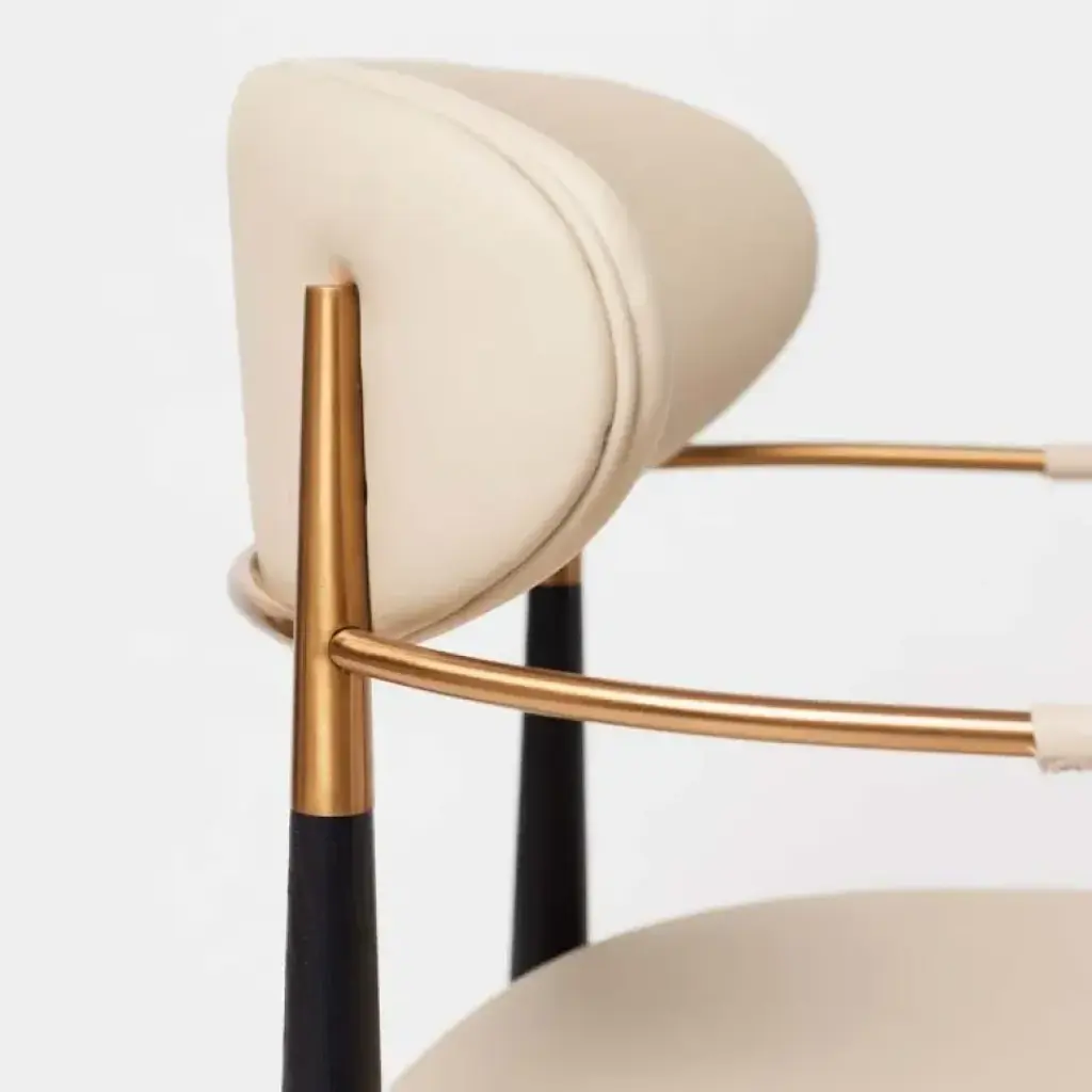Crafted of matte black ash, stainless steel in a satin brass finish and vegan leather in cream latte, mixed materials bring fabulous statement-making style to the Cidra Chair. This item is made of solid wood. Item will not be exactly as pictured, subtle deviations in hue after finishing can be expected as a result of natural variations in coloration of the base material.