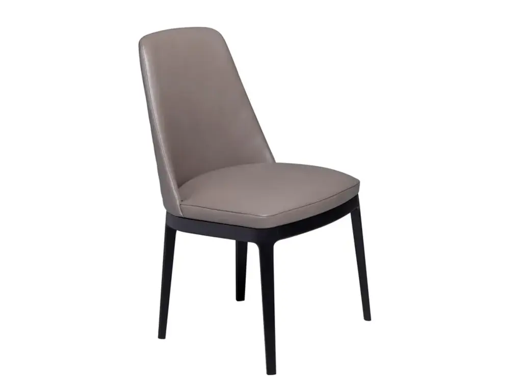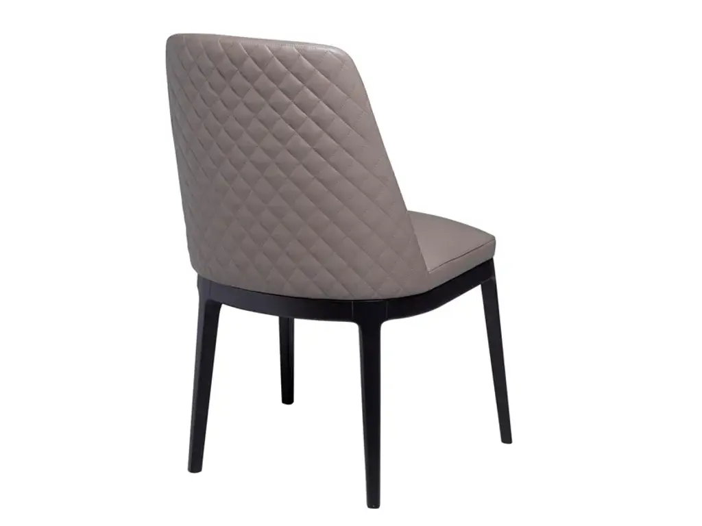 Cleo Élite is a chair with black ash base and padded seat with seagull gray leather upholstery, but also available in a wide range of fabics or eco-leathers.The new Cleo seat is an expression of timeless glamour. Comfortable cured in every detail it’s available in the version with rhombus stitching on the back, wich underline its craftmanship, Cleo enhances every living space with its impactful identity. Also available in the Élite version with elegant pattern on the back.