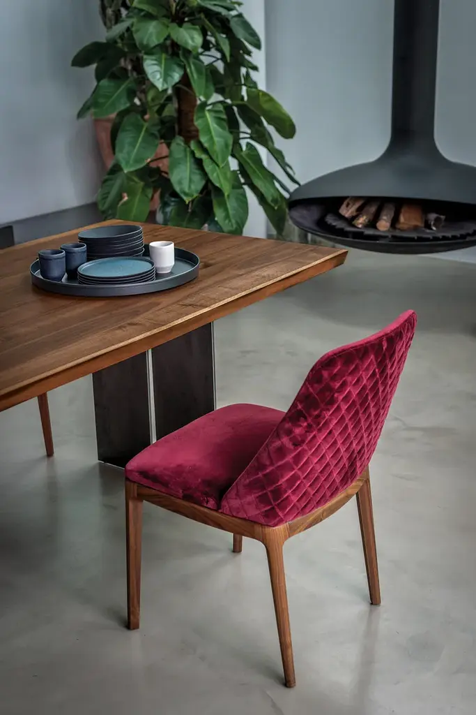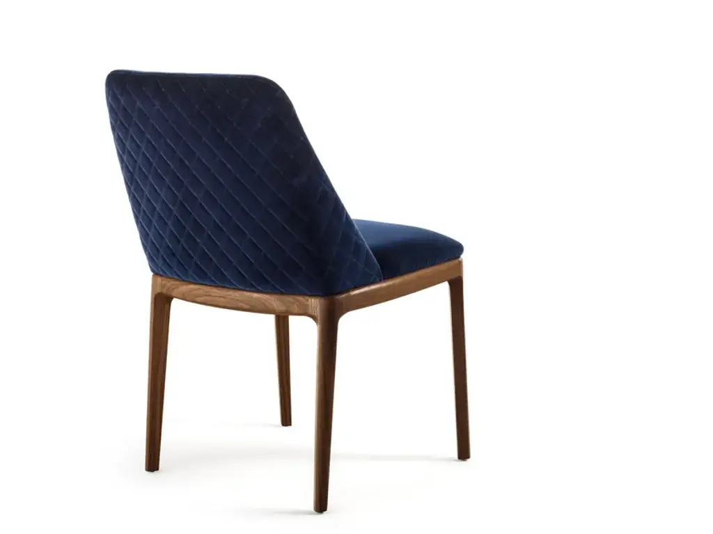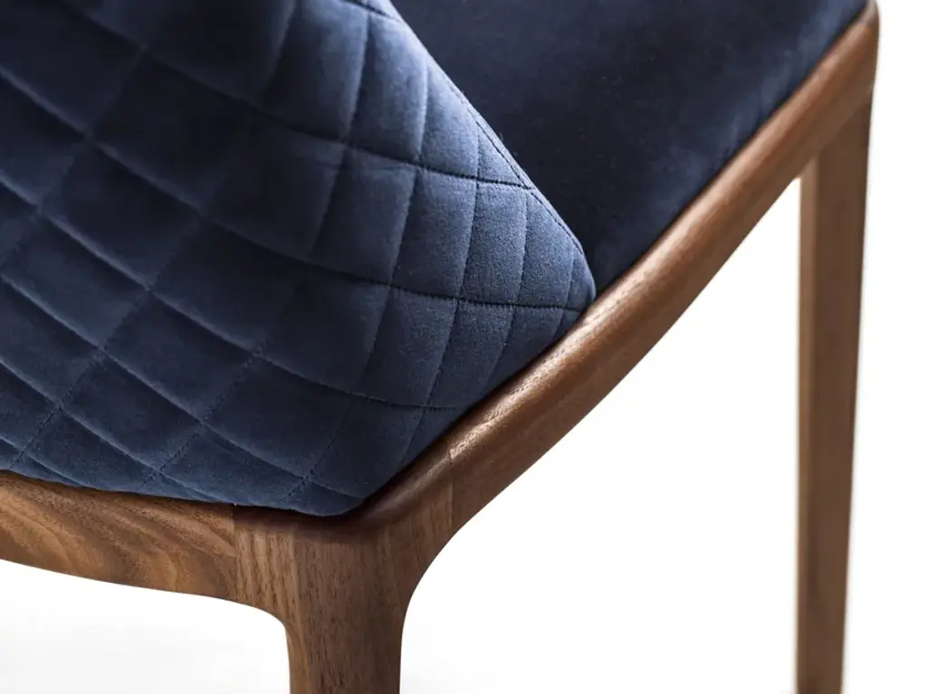 Cloe is n elegant chair with legs in solid wood and structure made of polyurethane with back and seat in continuous line. Version without armrests, with cover in leather or fabric; the back of the chair cover can be plain or with rhombus stitching.STANDARD VERSION: PLAIN COVERAVAILABLE FINISHES:A1: walnut without knotsA2: knotless oak, cherryA4: knotless oak pigmented: milk white, total blackD1: fabric: canvas, divina melange 2, hallingdal 65, harald velvet, bouclè, milano M107, tokyo M115D2: fabric: mapleD3: leather: suede, crystalD4: leather: nubuckD6: customer leather, customer fabric