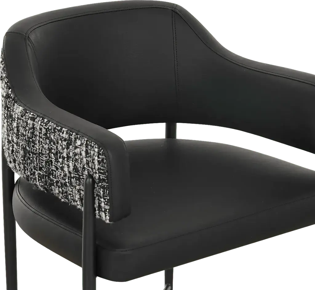 Meet the Cloudtales II black armchair. Each piece pairs sleek black iron with easy-to-clean faux leather, and luscious fabrics rich in texture and built to repel spills. Style-forward yet everyday-friendly, these sculptural silhouettes bring modern contrasts and cool composure to any space.