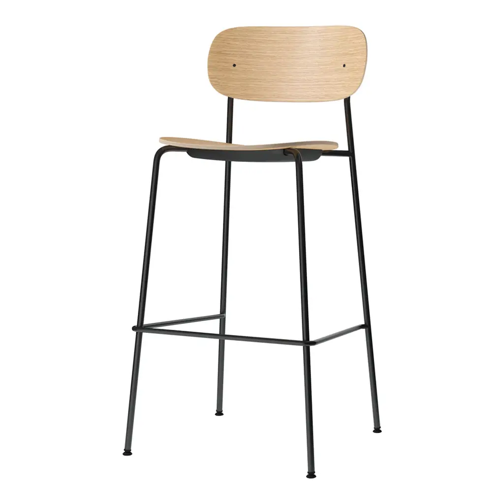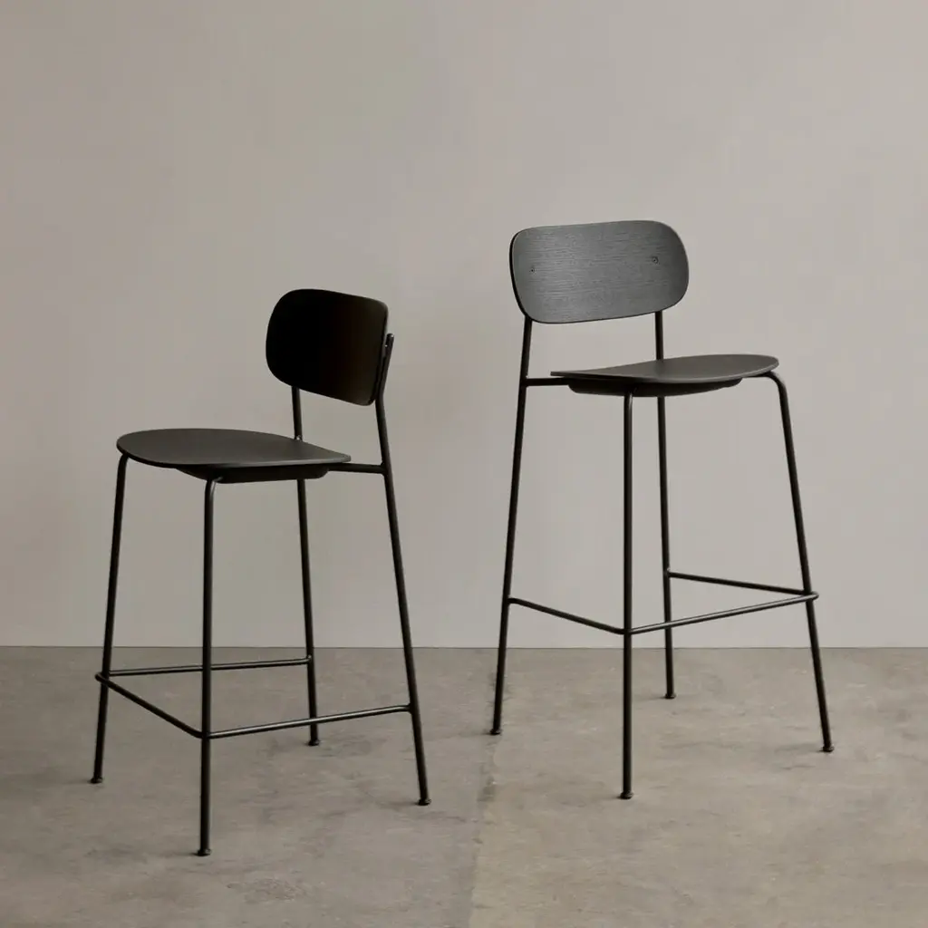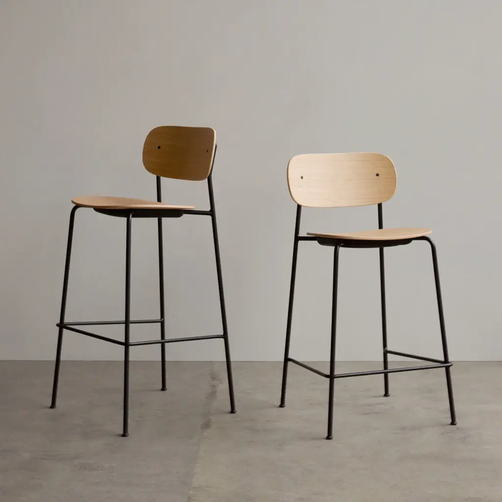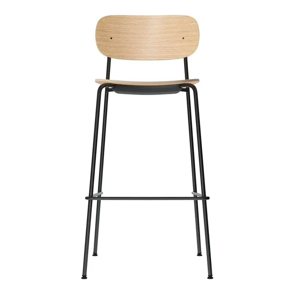 Distinguished by its wide back, generous seat and slender frame, the Co Bar Chair is equal parts comfortable and elegant. Conceived in collaboration with Norm Architects and Els Van Hoorebeeck, the elevated design features a footrest for additional support as you sit.